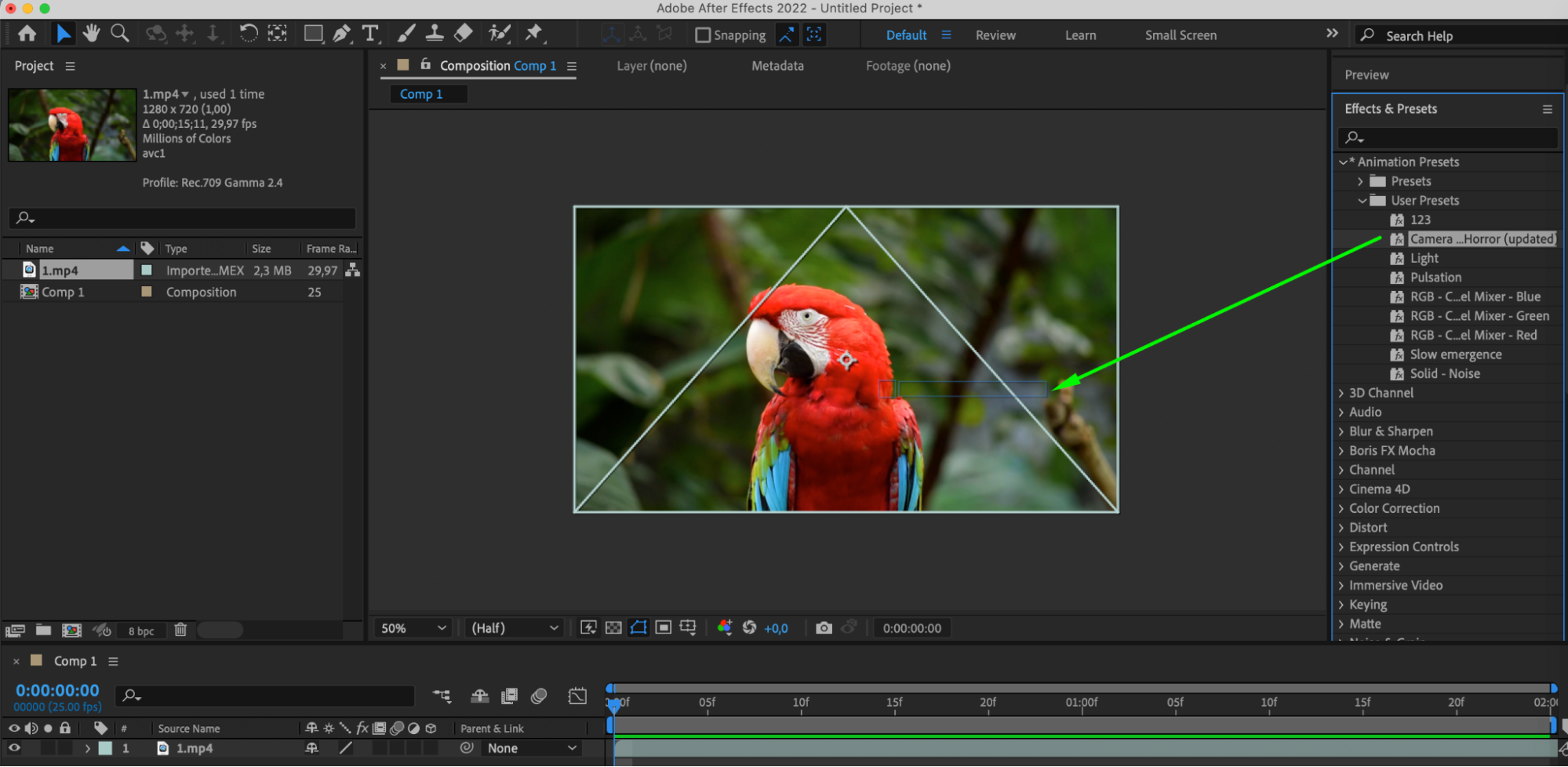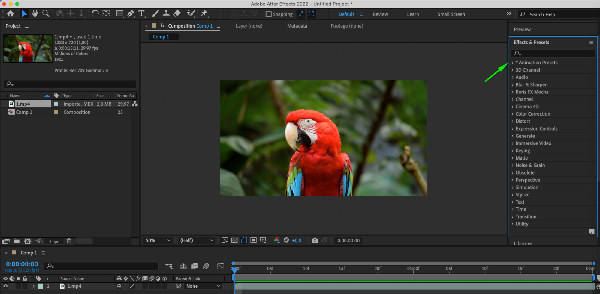 Import the file or footage to which you want to apply the downloaded effect. Drag the imported file onto the timeline panel to create a new layer.