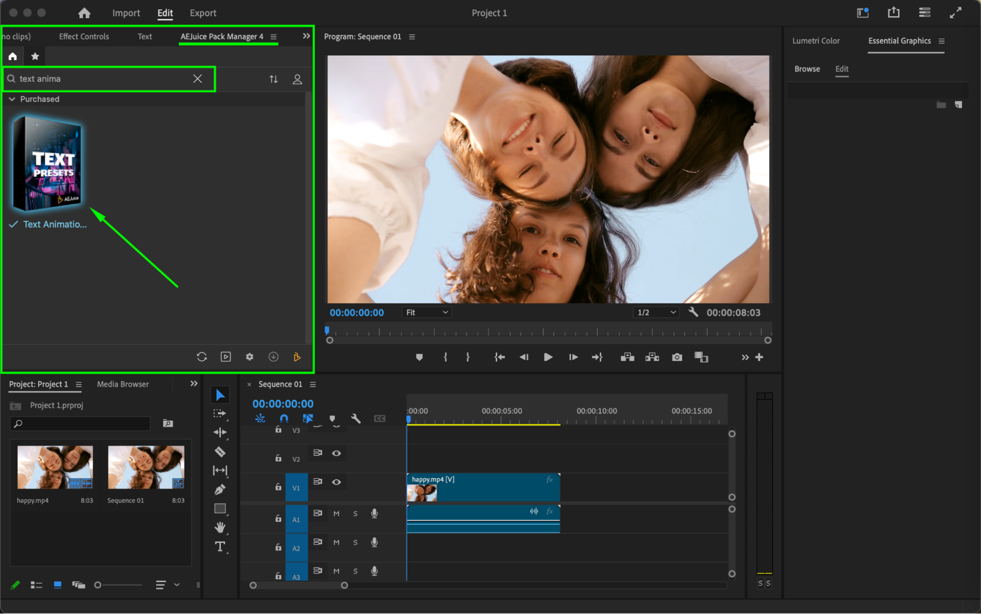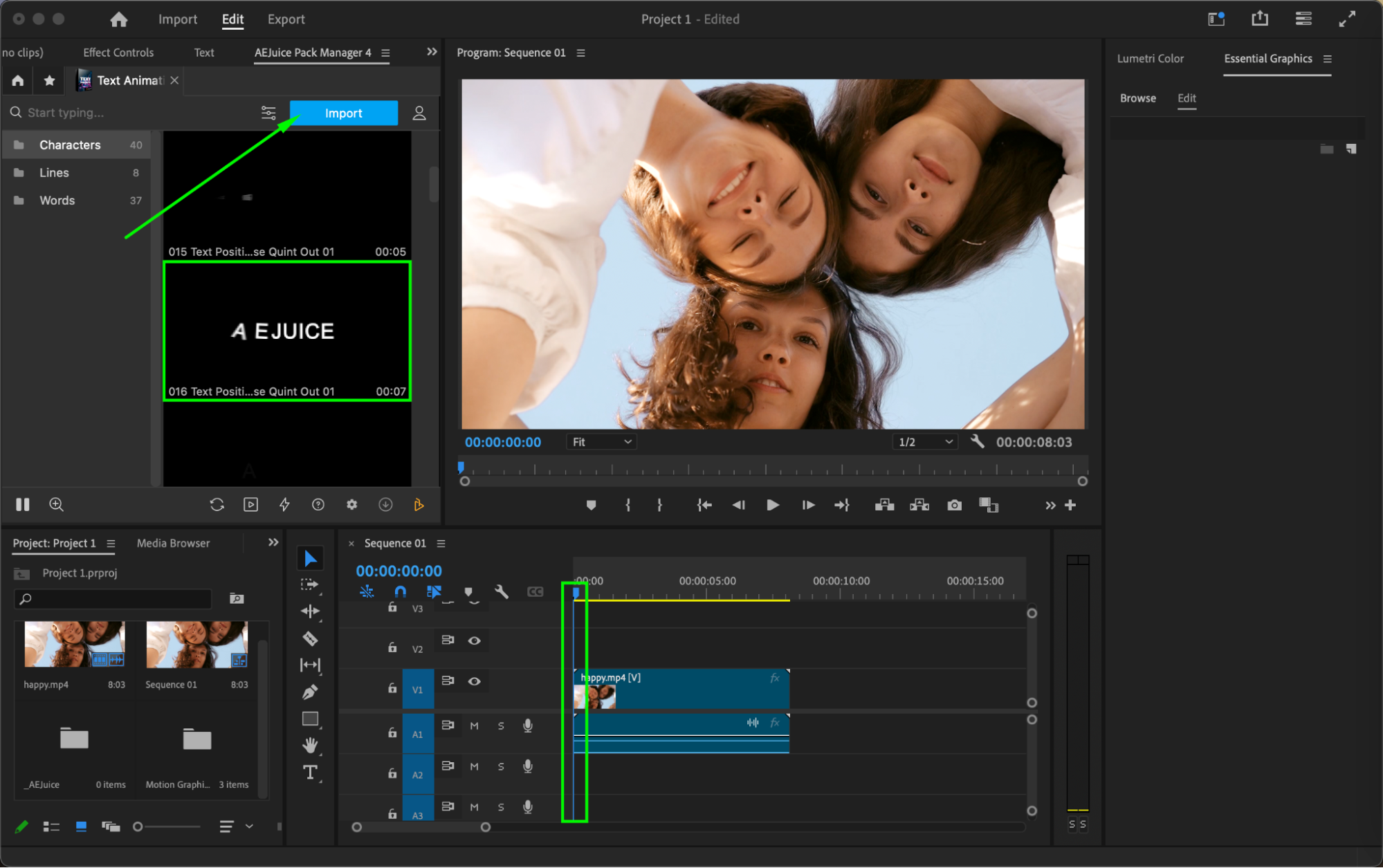 Add Animated Text in Premiere Pro with AEJuice Presets