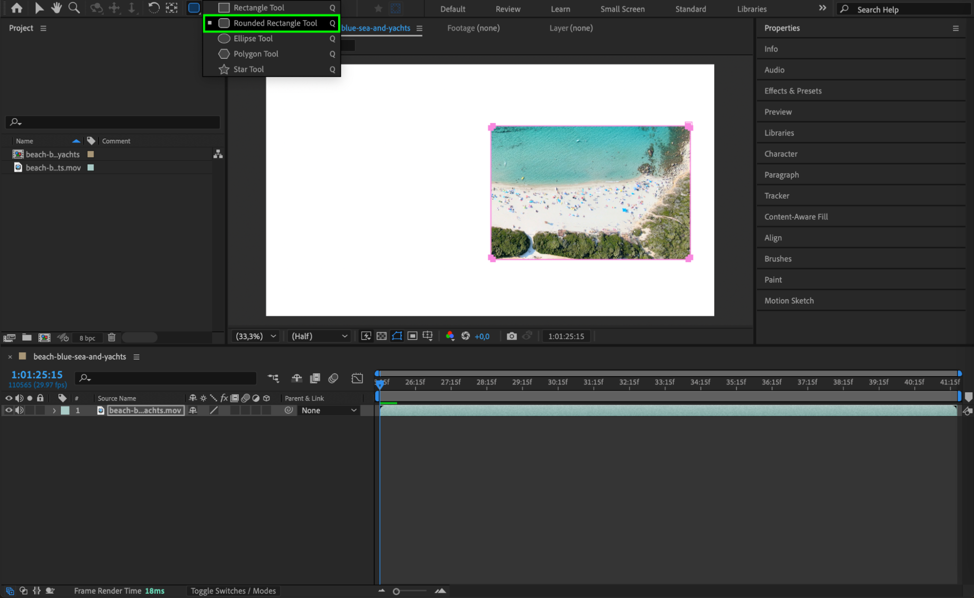 First, select the layer where you want to create a mask. Use the Pen Tool (G) or Shape Tools (Q) to draw the mask directly on the layer in the Composition panel. Adjust the shape as needed.