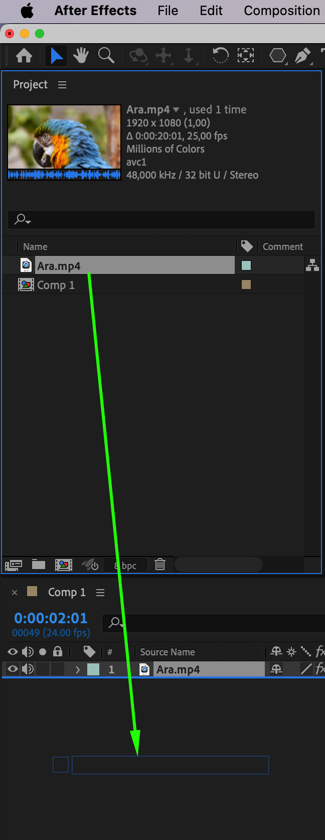 If you’re inverting colors on existing footage, go to File > Import > File and select the video or image you want to use. Drag the imported footage onto the Timeline. Alternatively, you can use the Shape Tool (Q) to create a new shape layer directly in After Effects by selecting the shape type and drawing it on the canvas. This will be the layer you’ll apply color inversion to.