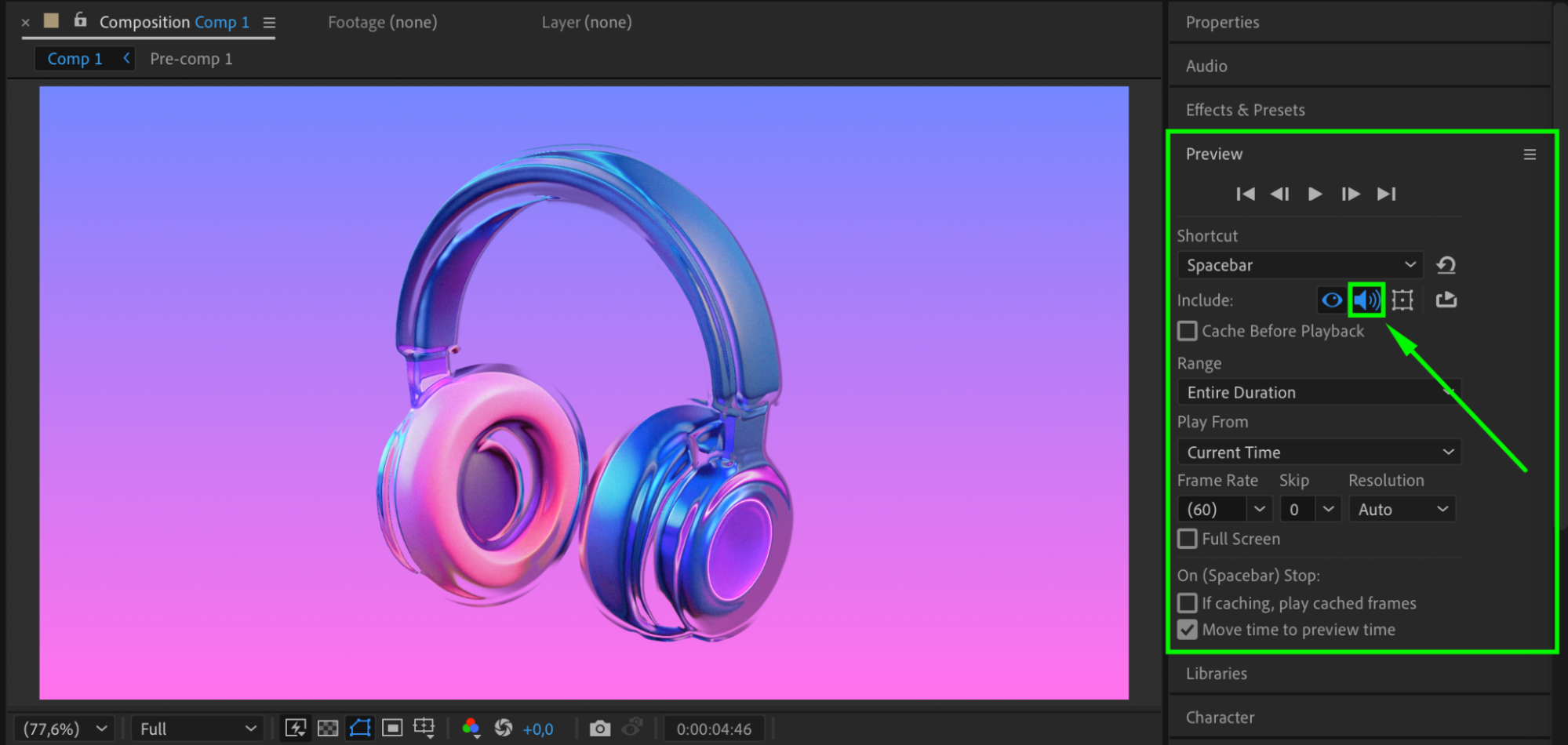Press the spacebar to preview your animation. Observe how the motion syncs with the music. If needed, adjust the expressions or add keyframes to emphasize specific beats or reduce sensitivity in quieter moments.