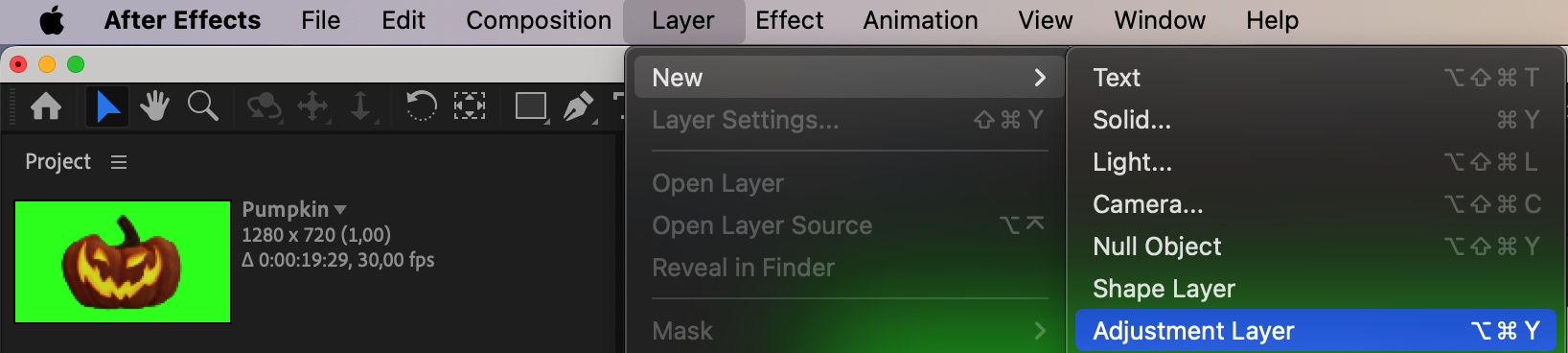 Next, create a new adjustment layer by going to Layer, selecting New, and choosing Adjustment Layer. This layer will hold the effects and adjustments needed for the green screen keying process.