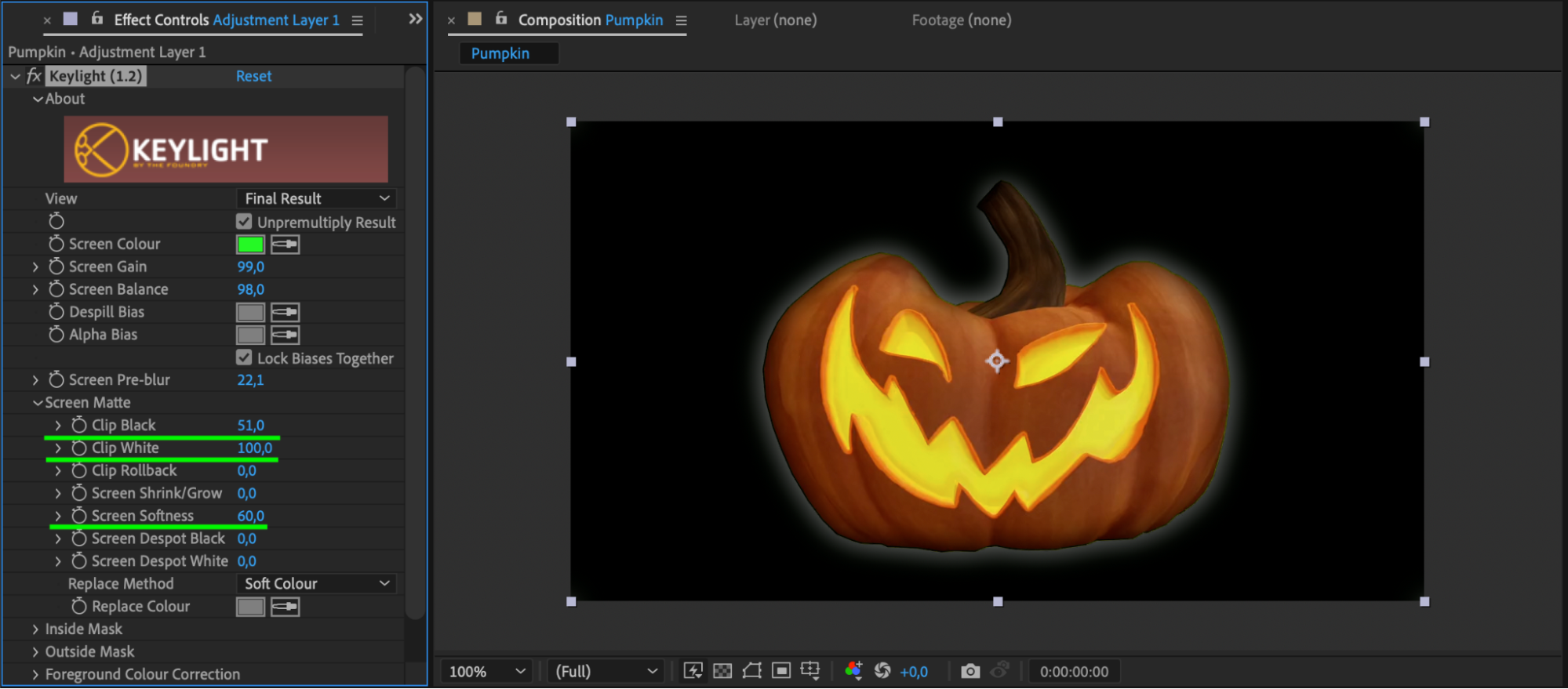 If you still have areas that are not properly keyed out, use the Screen Matte feature within the Keylight effect. Adjust the Clip Black, Clip White, and Clip Softness settings to selectively remove or bring back parts of the background.