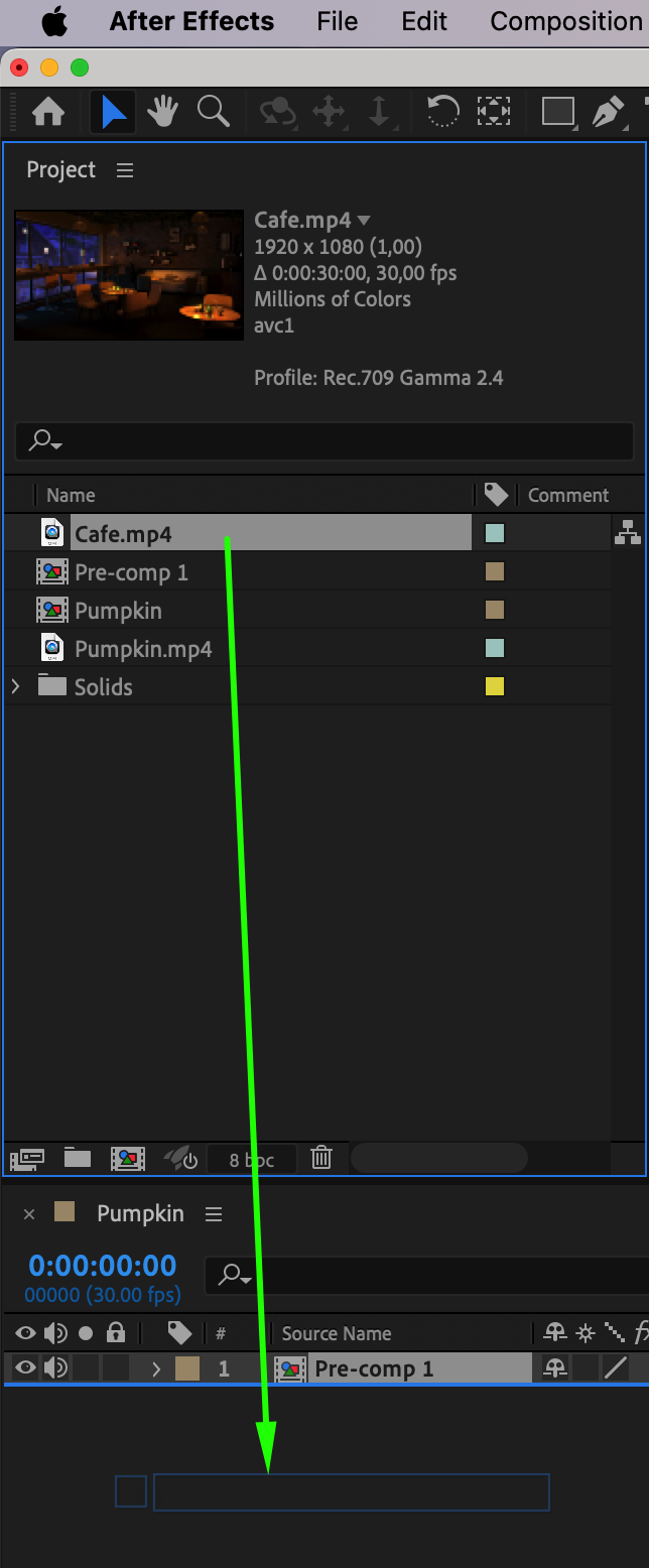 Start by importing your green screen footage into After Effects. Go to File, select Import, and choose the file you want to work with. Drag and drop the footage into the composition panel to create a new composition.