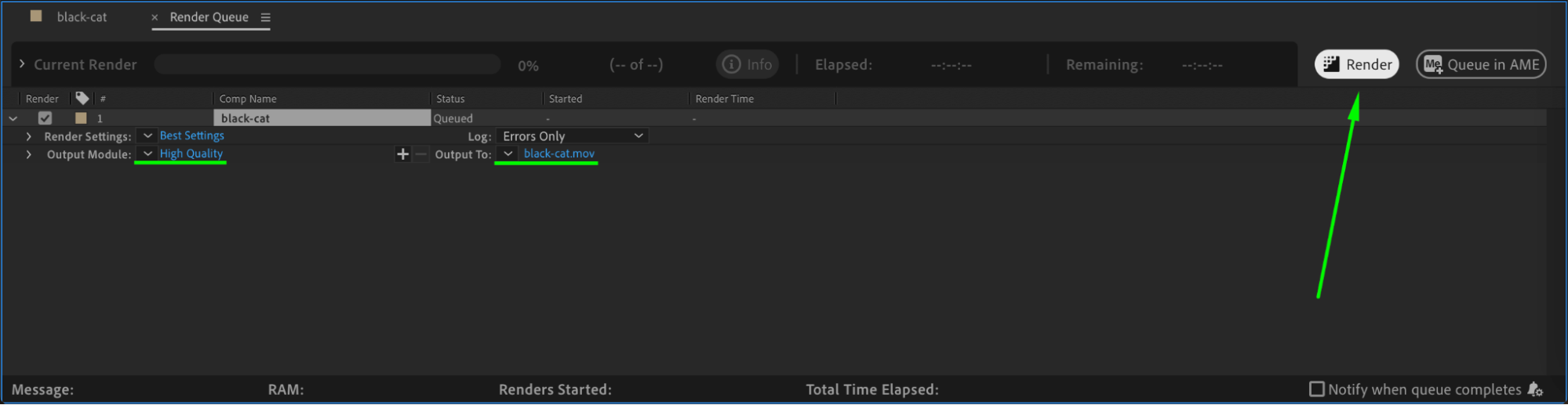 Once satisfied, go to Composition > Add to Render Queue or Add to Adobe Media Encoder Queue to render your animation with the applied effects.