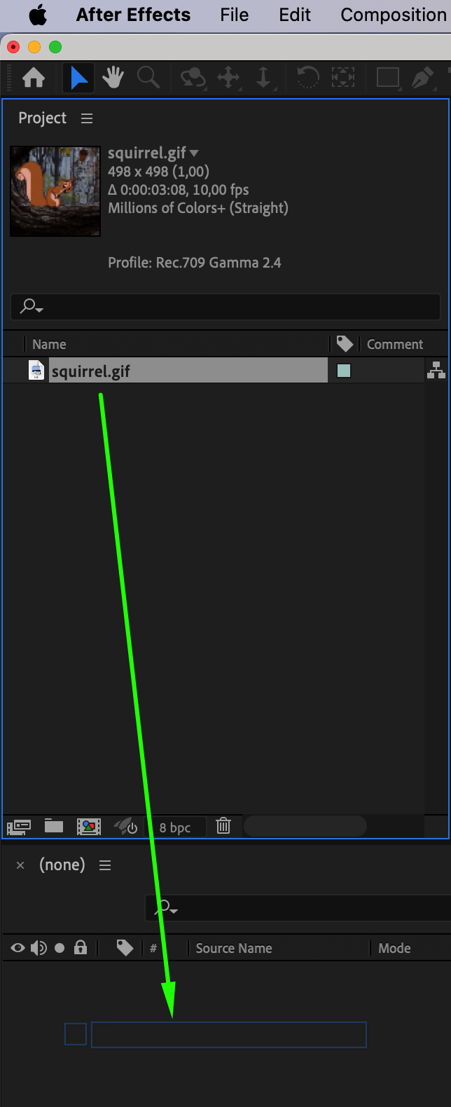 To get started, import your GIF file into After Effects by going to File > Import > File. Once your GIF is imported, it will appear in the project panel. Drag the file to the timeline panel to start working with it.