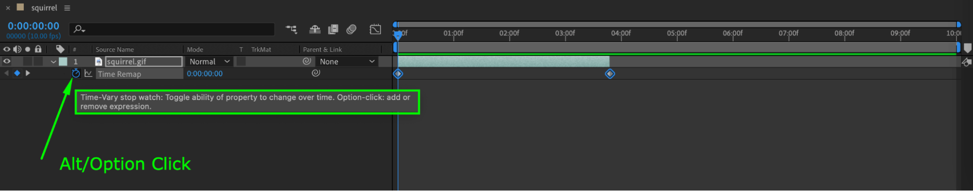 Right-click on the GIF layer and select Time > Enable Time Remapping from the submenu.