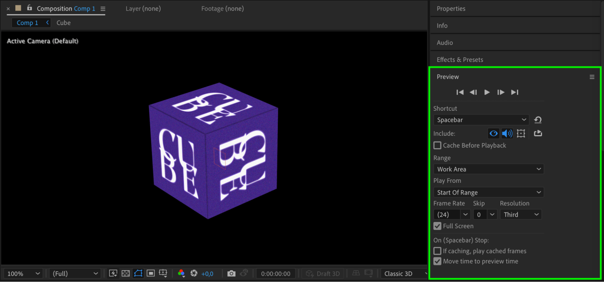 Use the Preview feature to view and fine-tune your cube animation. Make adjustments as needed to ensure the rotation and appearance meet your expectations.