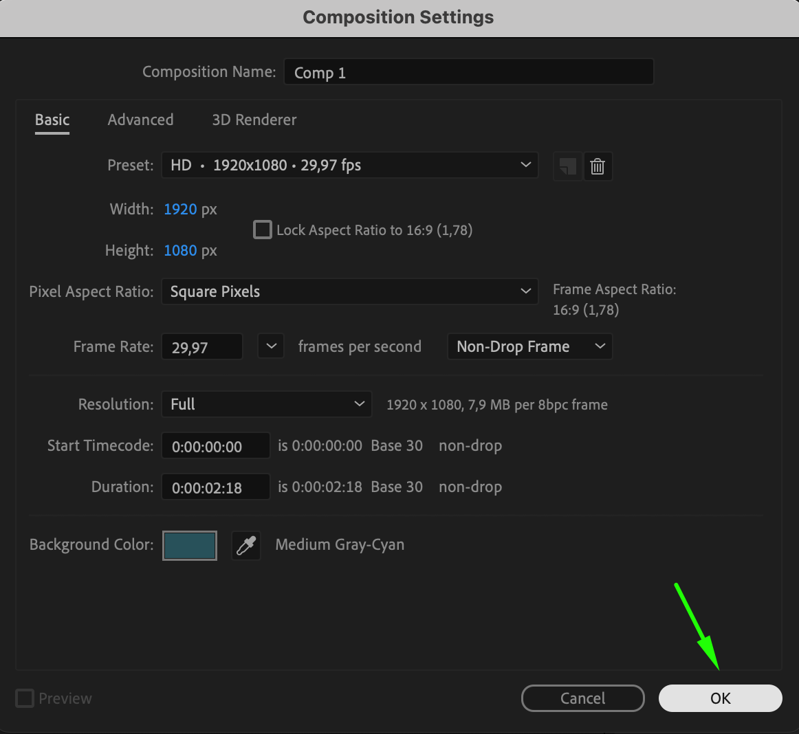 First, open After Effects and create a new composition. Go to Composition > New Composition, then set the dimensions, duration, and frame rate based on your project needs. Choose HD resolution (1920×1080) for standard video or adjust as required. This will be the workspace for your 3D letters.
