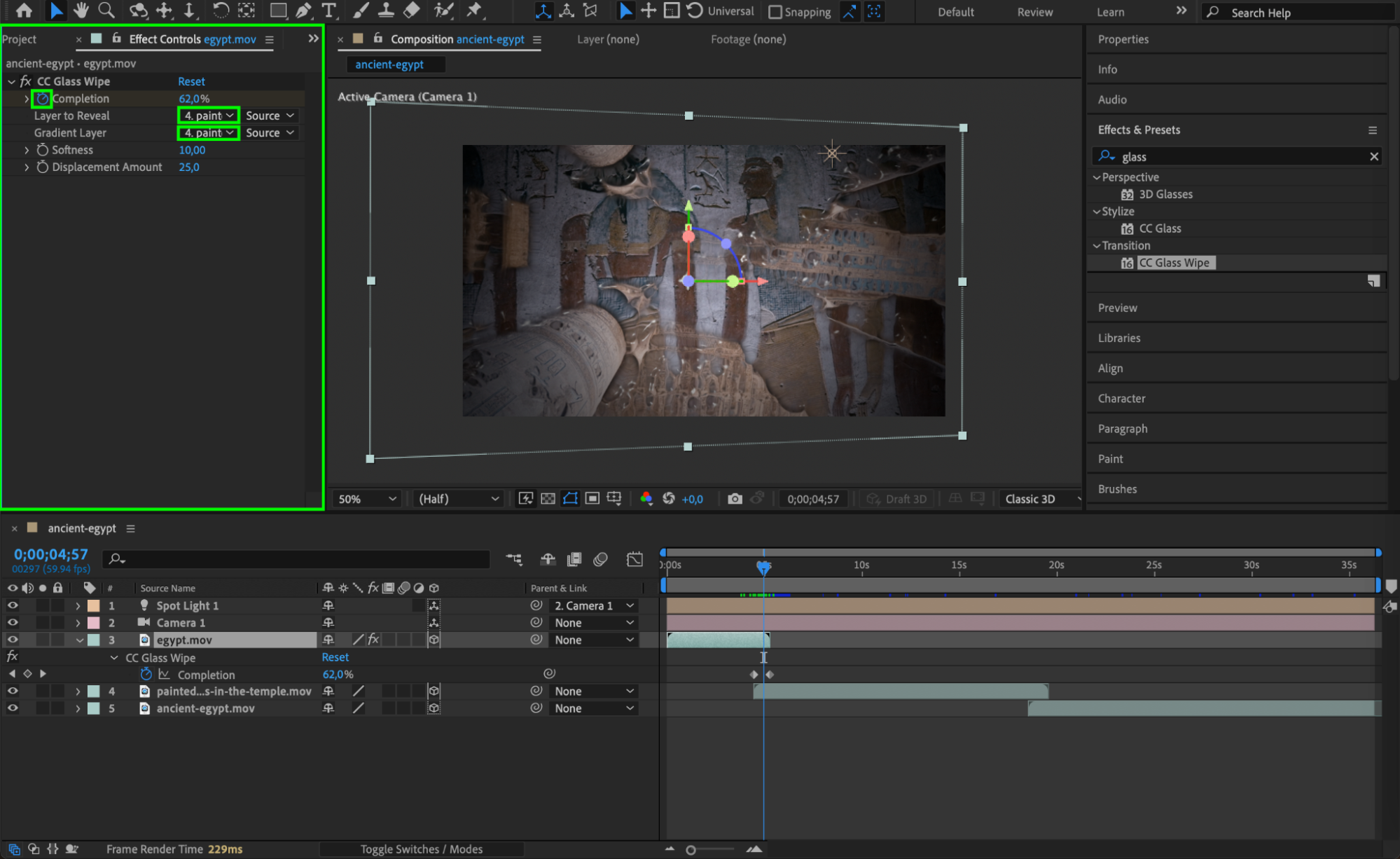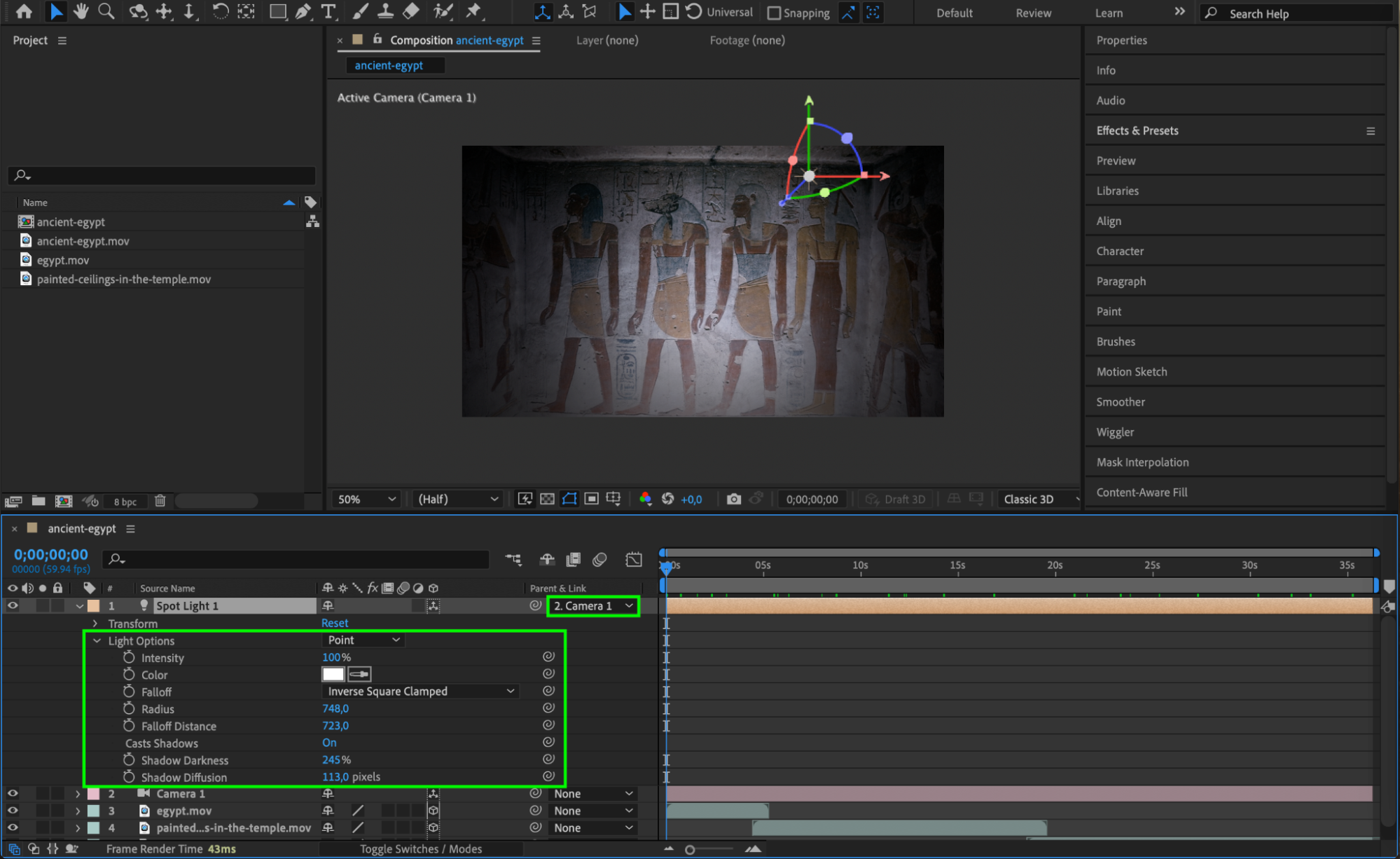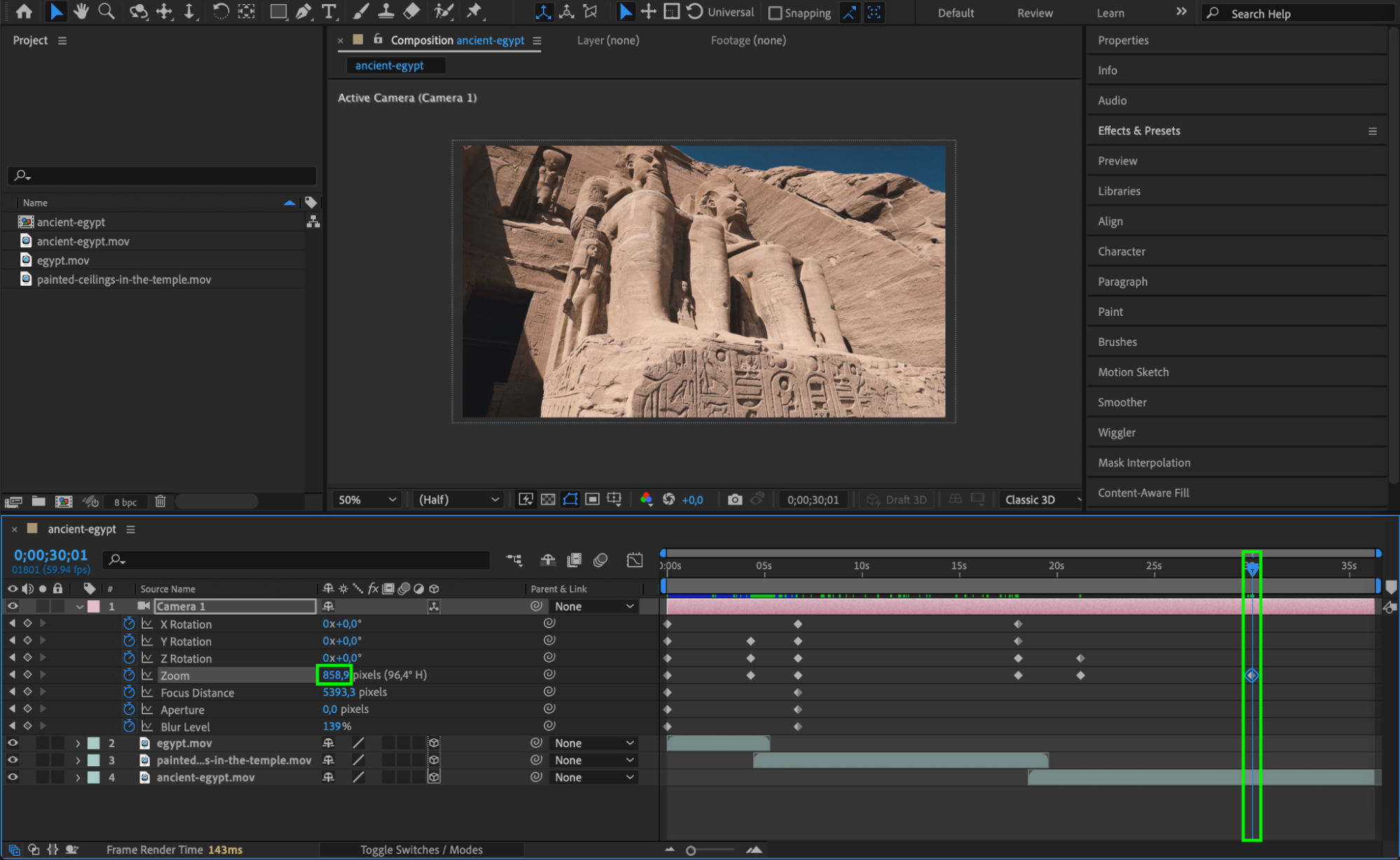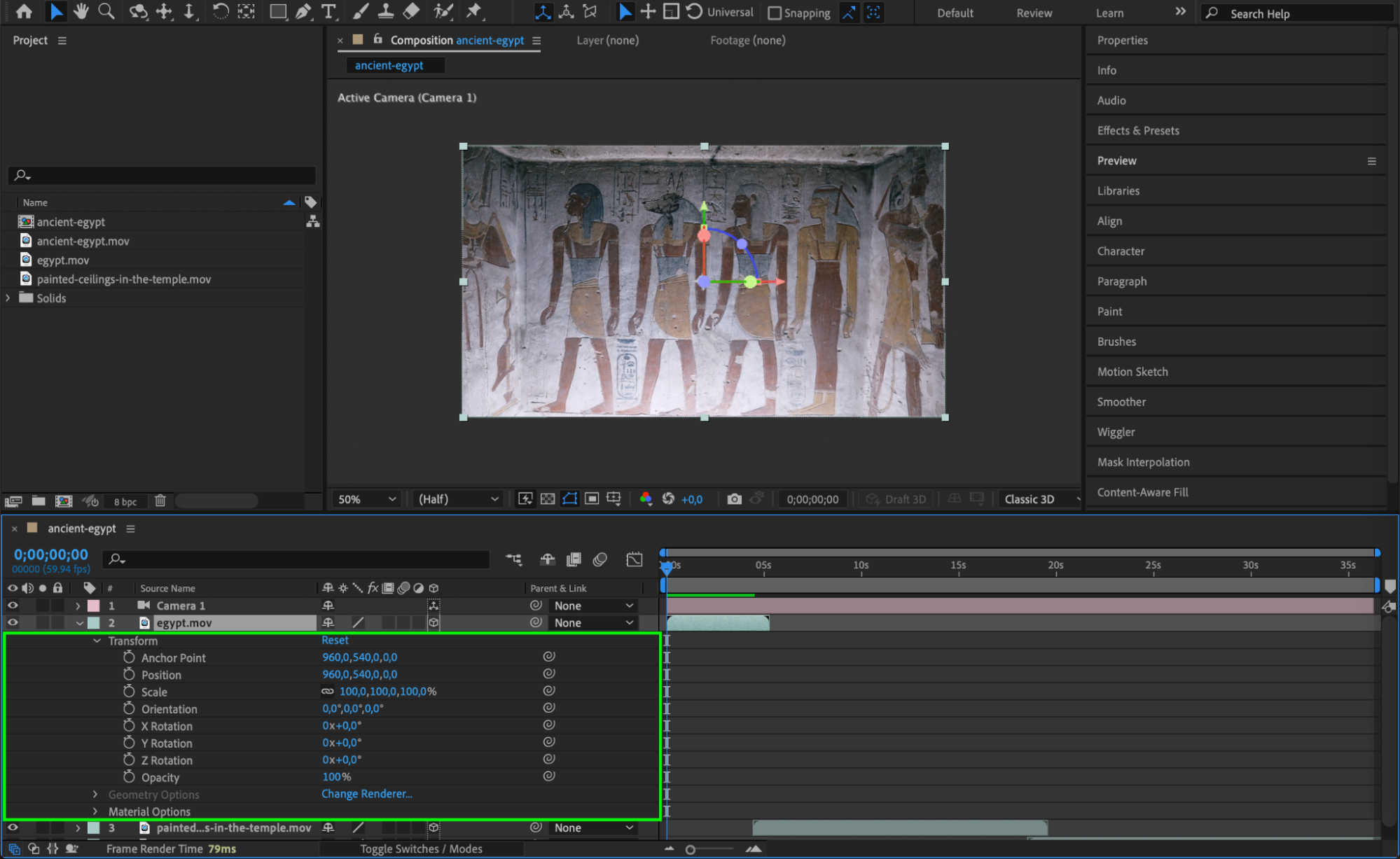 Now that your camera is in place, start animating its movements. Use keyframes to define camera actions such as panning, zooming, or rotating. To set a keyframe, click the stopwatch icon next to the parameter you want to animate (e.g., zoom, rotation). By adjusting these keyframes along the timeline, you create smooth transitions and dynamic movement, adding depth and motion to your 3D movie.