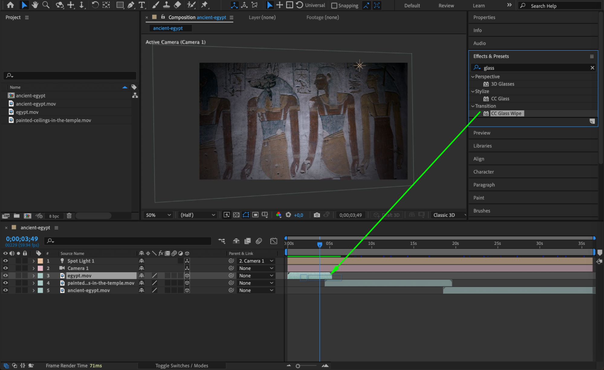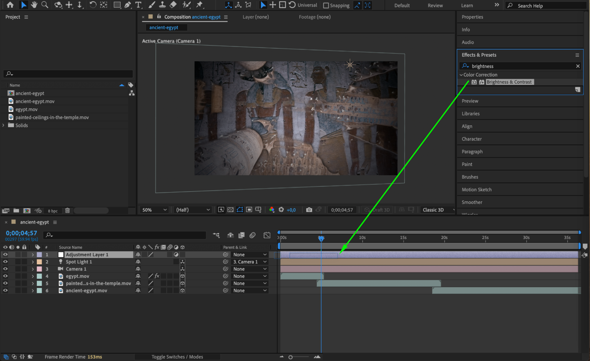 Enhance your 3D movie by applying visual effects such as color correction and grading. Use Brightness & Contrast, Hue/Saturation, or Curves from the Effects & Presets panel to adjust the overall look of your scenes. Experiment with other effects like Glow, Lens Flare, or Depth of Field to create striking visuals that draw in your audience. Proper color grading will unify your scenes and evoke the right emotional tone.