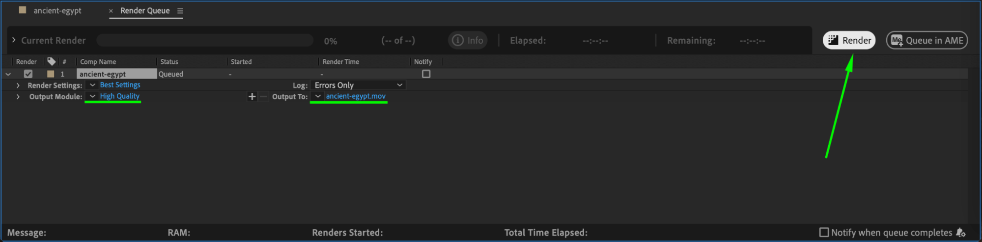 Once satisfied with your movie, it’s time to render. Go to Composition > Add to Render Queue. In the Render Queue, configure your output settings. For high-quality rendering, choose the desired output format (such as QuickTime or MP4), and make sure the resolution and frame rate are appropriate for your project. After adjusting the settings, click Render to export your 3D movie.