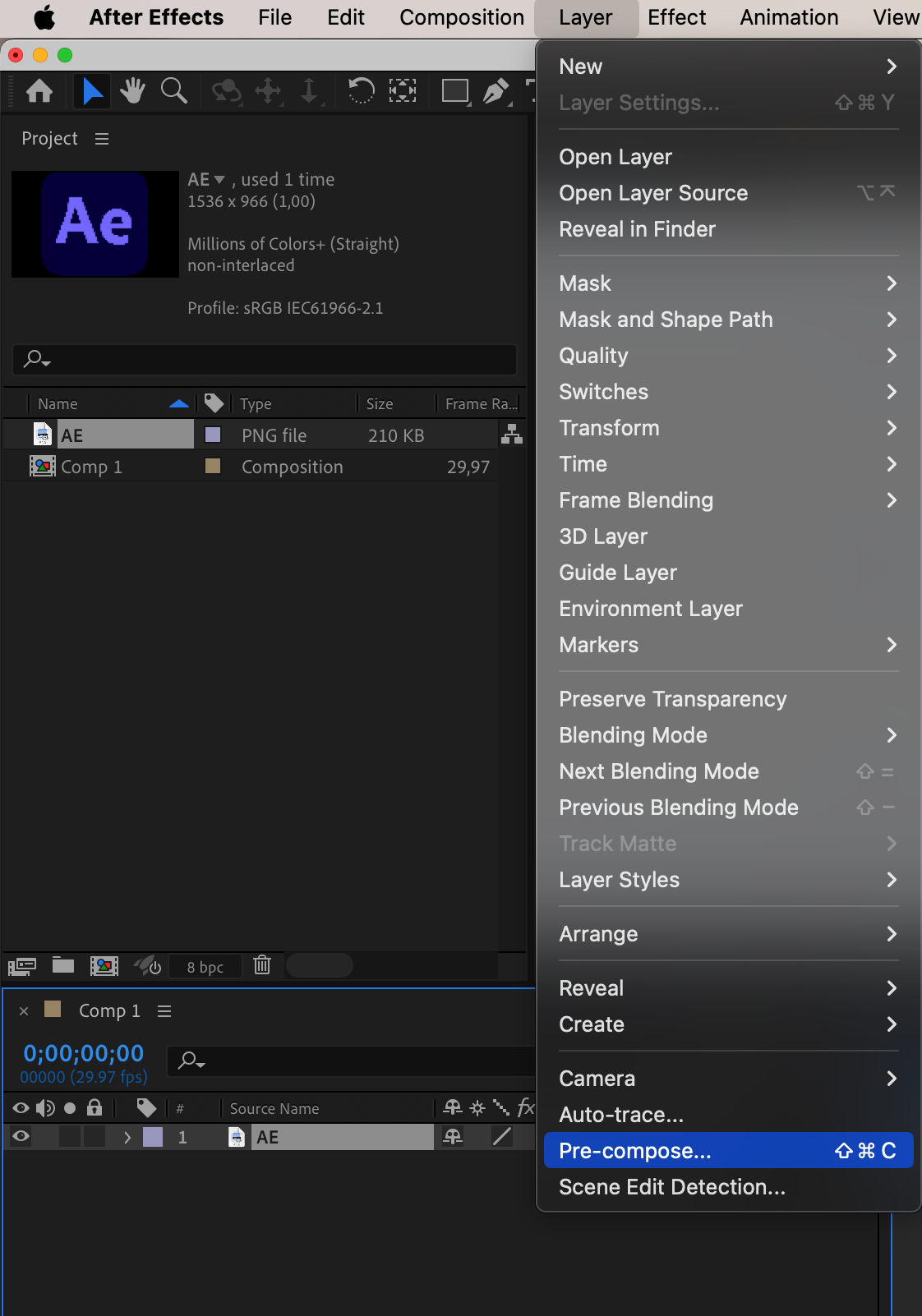 Create a pre-composition for your image through the “Layer > Pre-compose” menu.