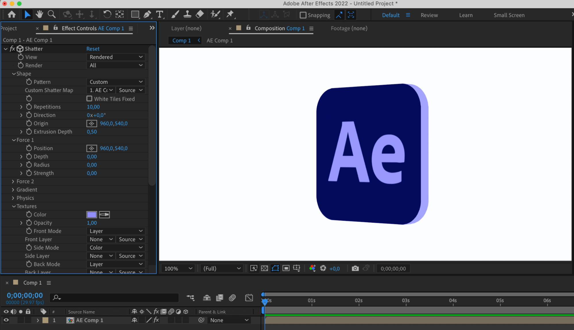 After completing these steps, your 2D image will be transformed into a 3D object using the Shatter effect in After Effects.