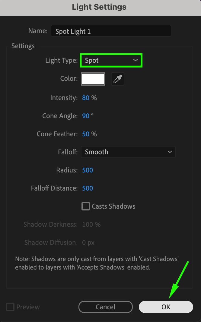 Spotlight: Position the spotlight so it highlights the circle and enhances its 3D appearance. Adjust its position and angle for the best result.