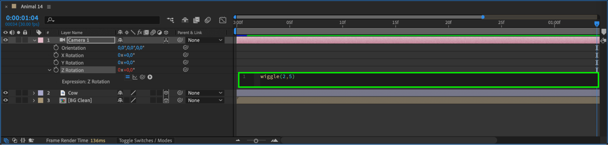 Step 9: Add a Wiggle Expression to the Camera