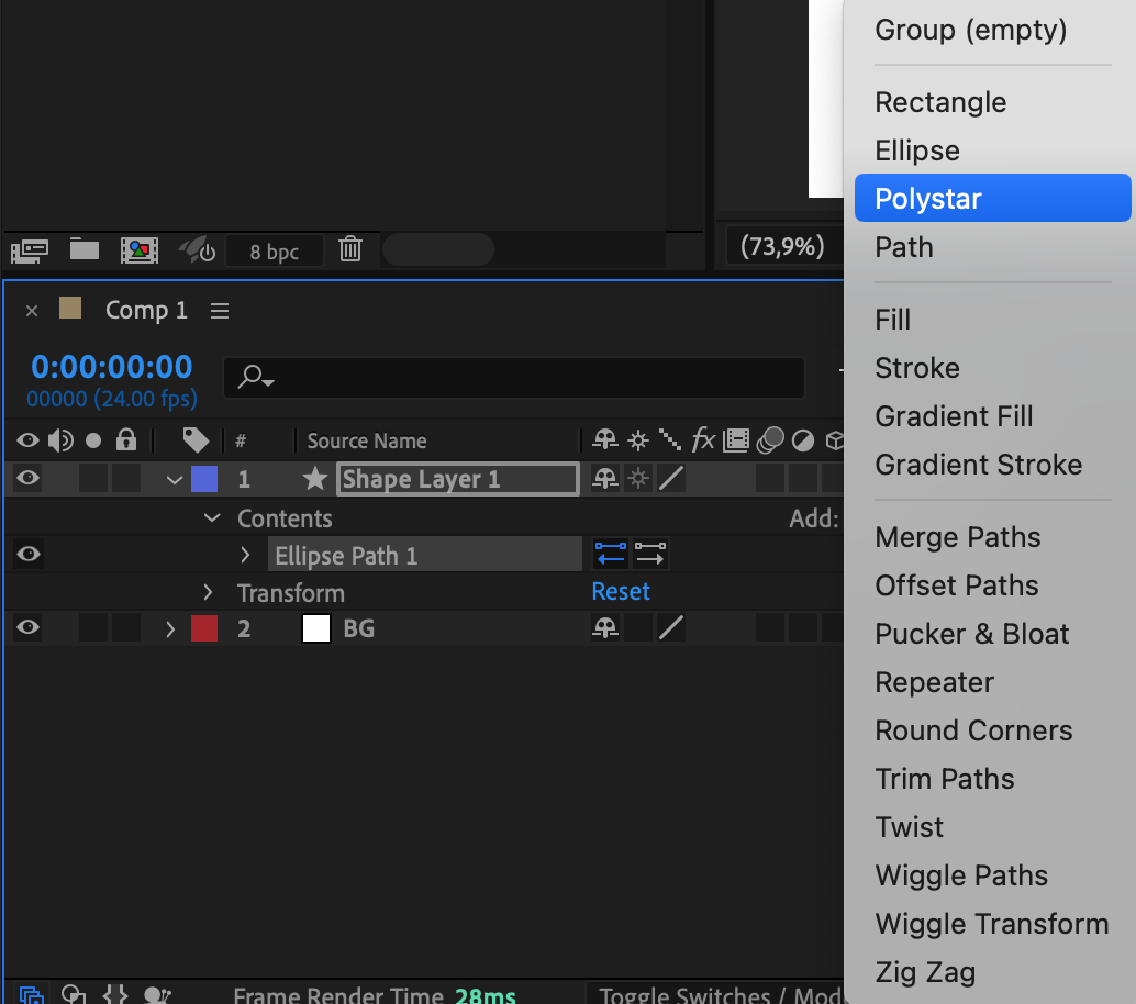Step 4: Add Ellipse and Polystar Shapes