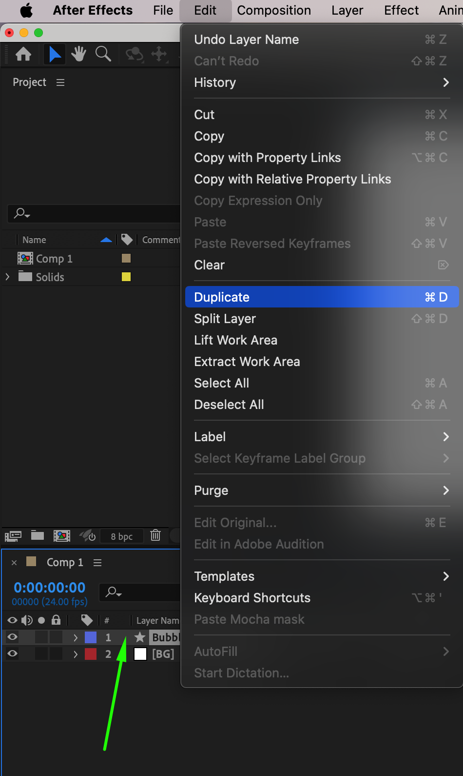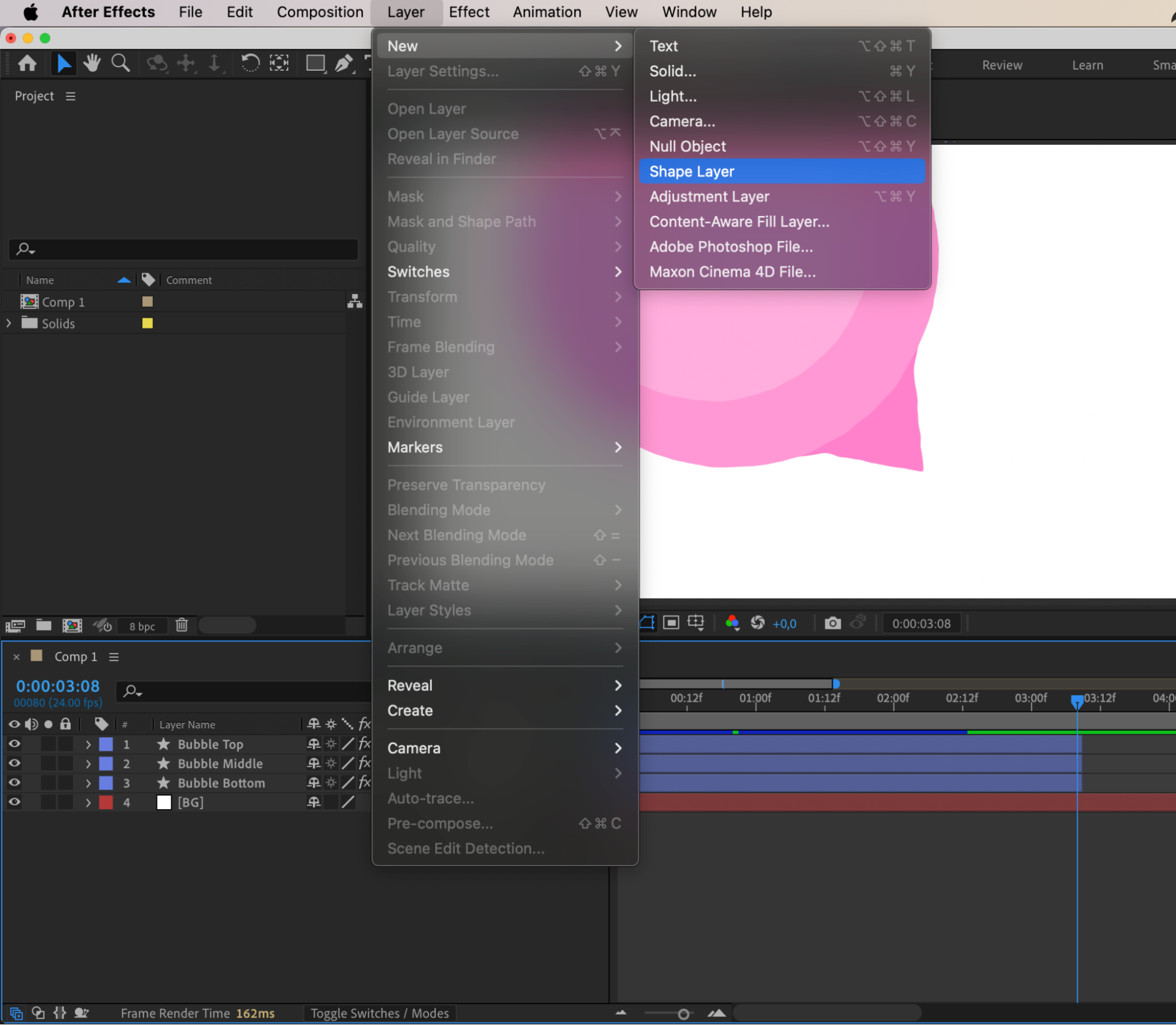Duplicate the shape layer twice (Ctrl/Cmd + D). Rename the layers: Bubble Bottom (original layer), Bubble Middle (first duplicate), Bubble Top (second duplicate).