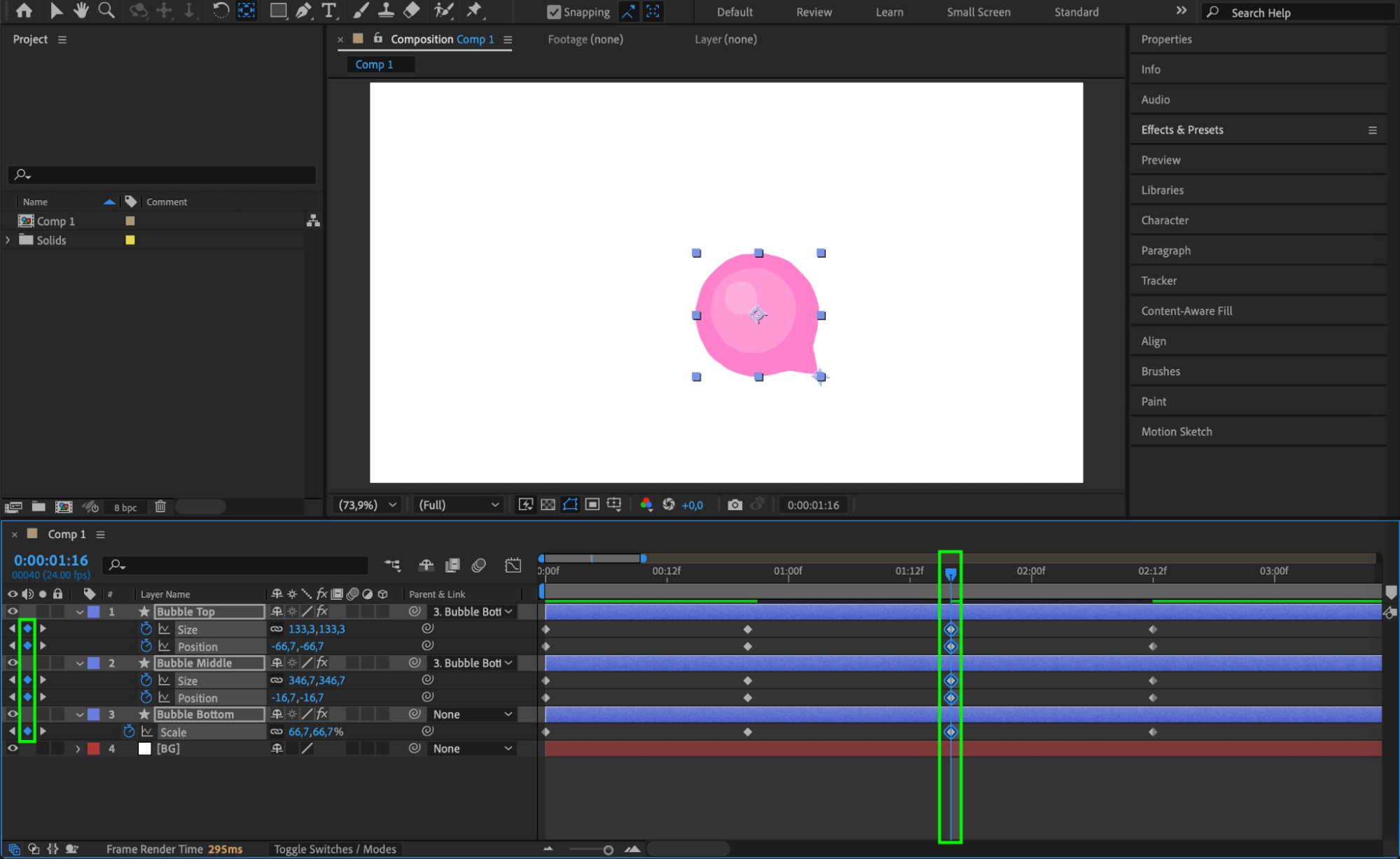 By following these steps, you have created a smooth, stylized bubble pop animation in After Effects. The combination of shape layers, effects, and keyframe animation helps achieve a realistic and visually appealing result. Experiment with colors, timing, and additional effects to customize your animation further