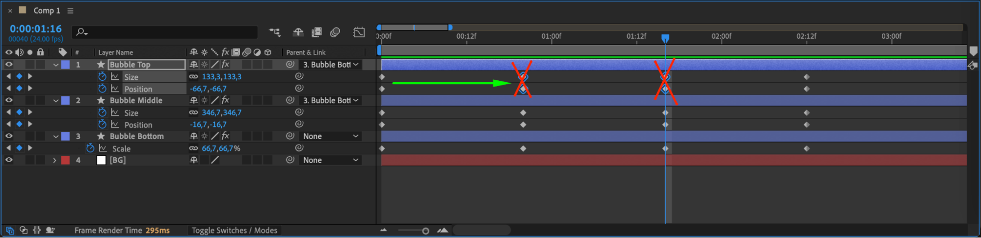 Remove keyframes for Size & Position at 20 and 40 frames.