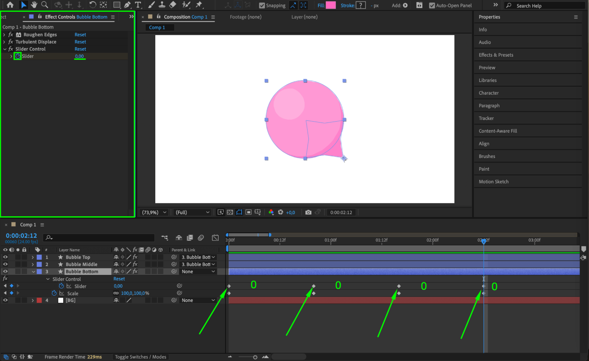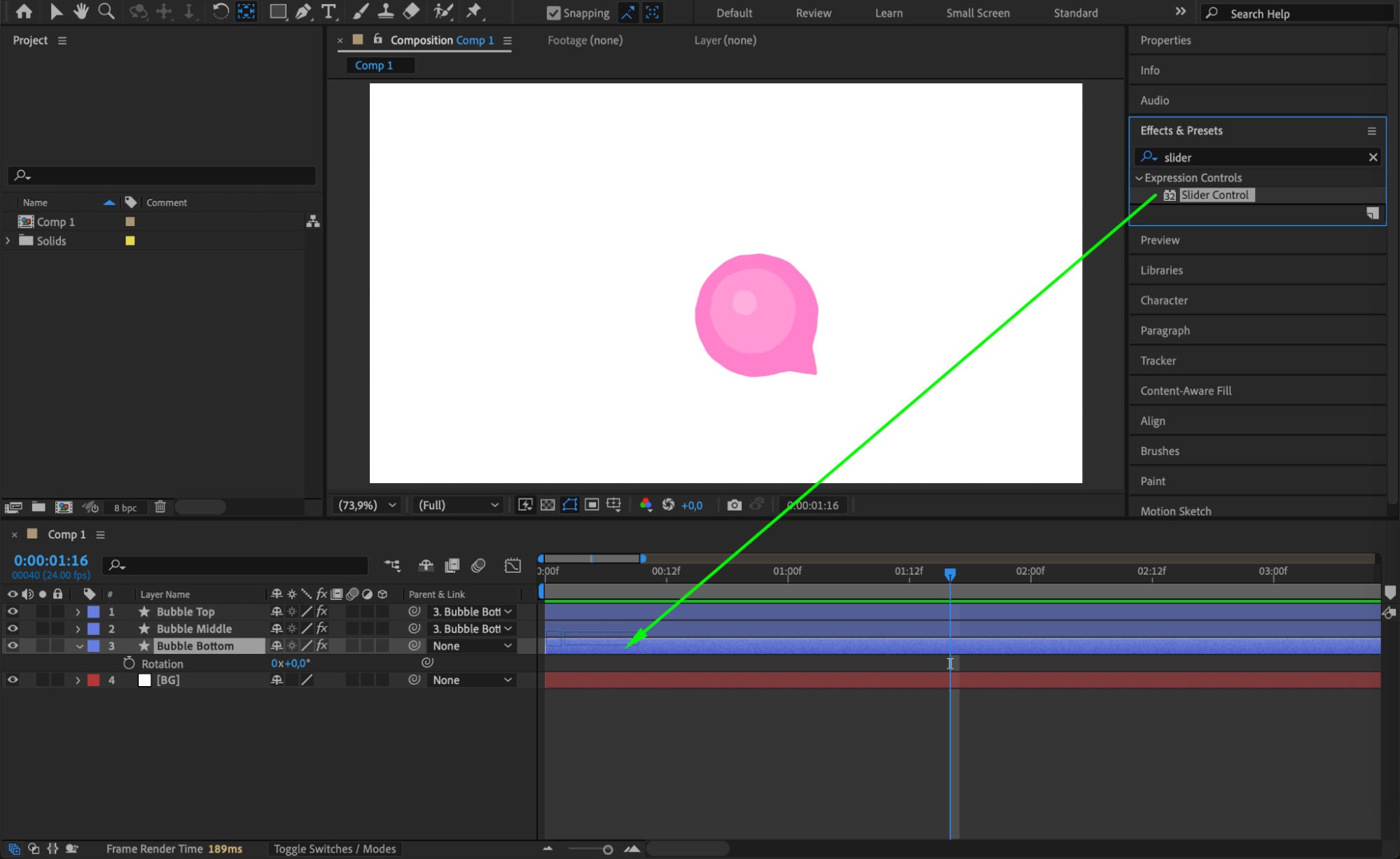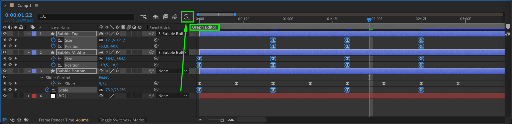 Apply the Slider Control effect to the Bubble Bottom layer.