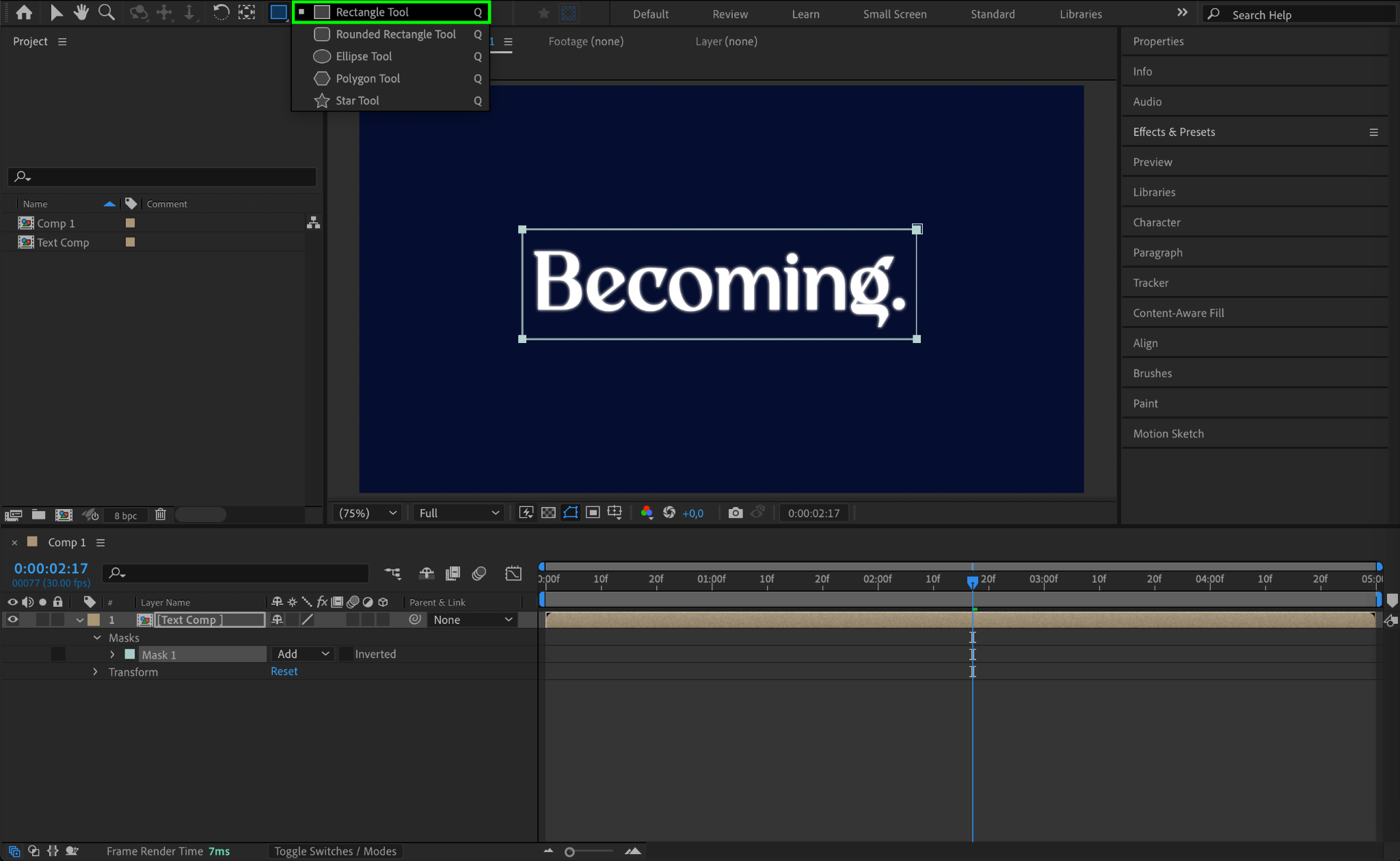 Open your project in After Effects. For example, if you have a text layer that moves from left to right using keyframes in the Position property, any mask you create on that layer will move along with it.