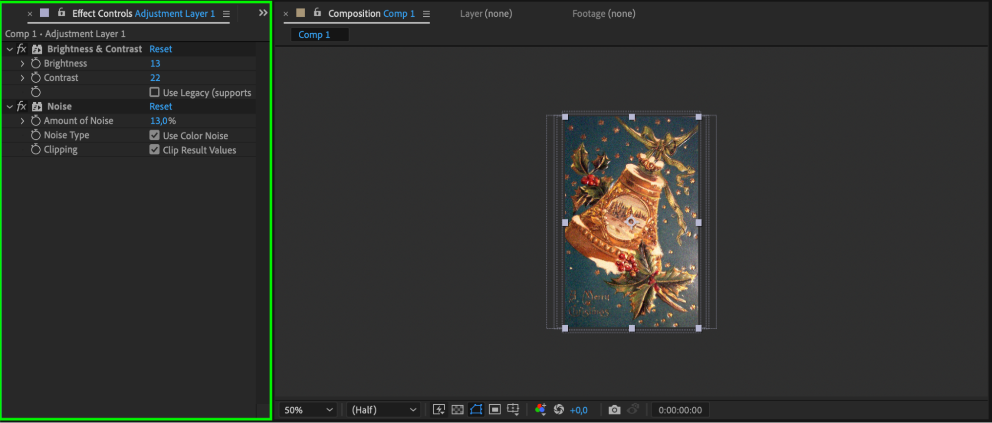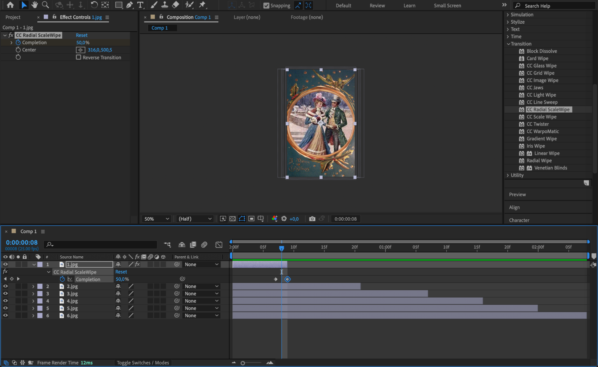 Use the Transform section under each image layer to adjust the placement of each photo on the composition panel as needed.