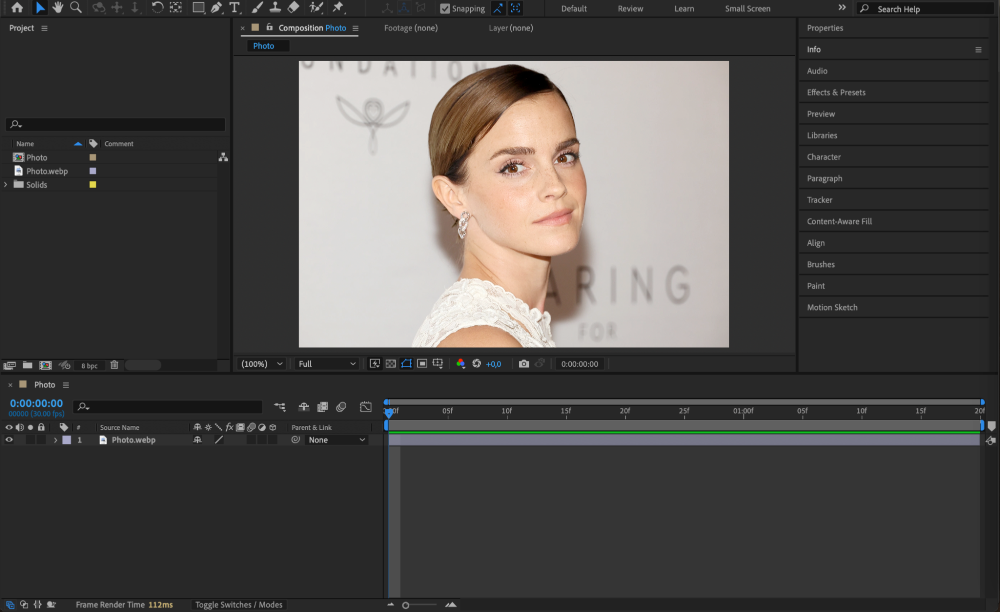 Open After Effects and import your photo. Drag it onto the timeline to create a new composition. Make sure the image is properly positioned and scaled for animation.