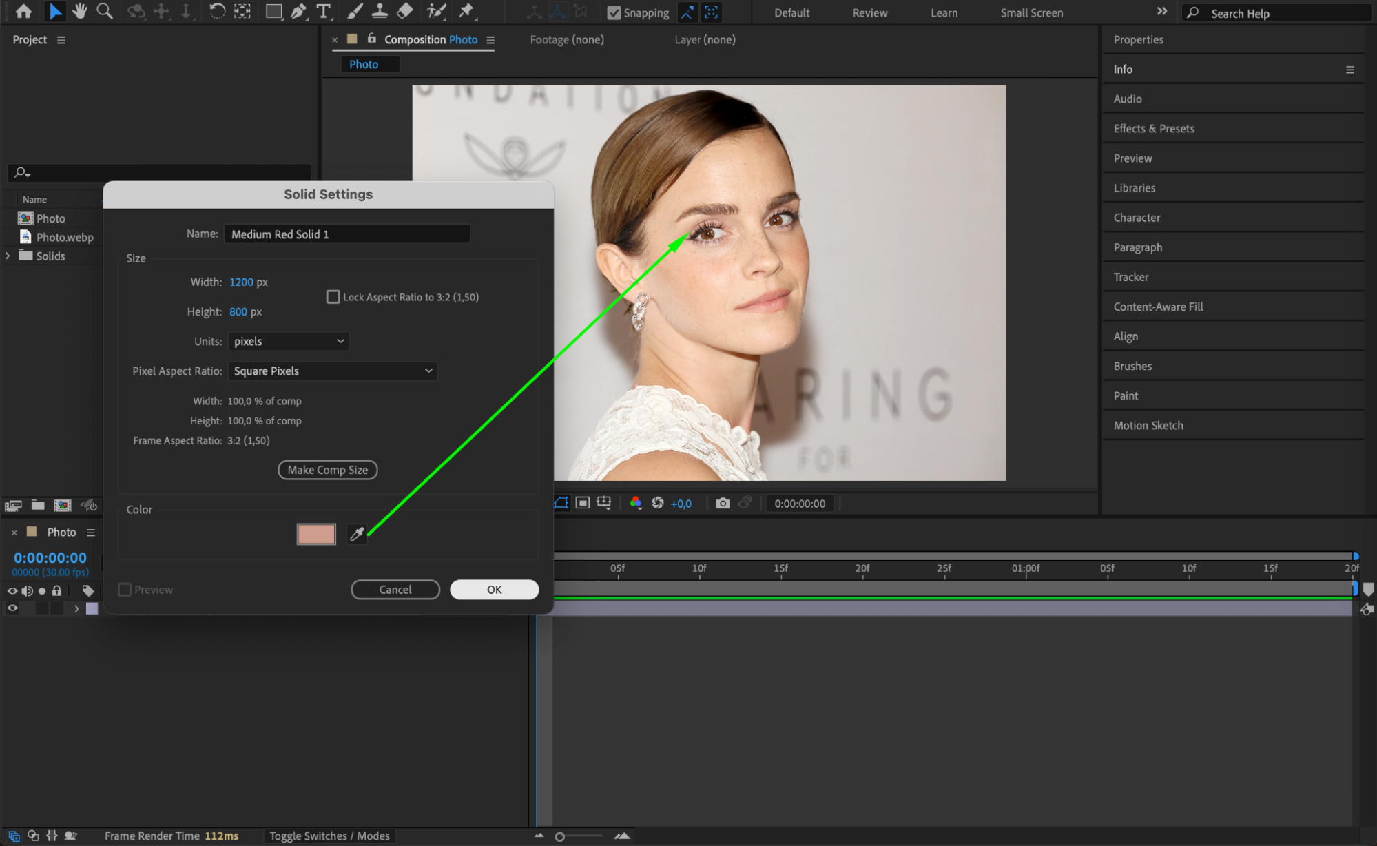 Go to Layer > New > Solid and choose a color that matches the skin around the eye. This solid will be used to blend the closed eyelid naturally.