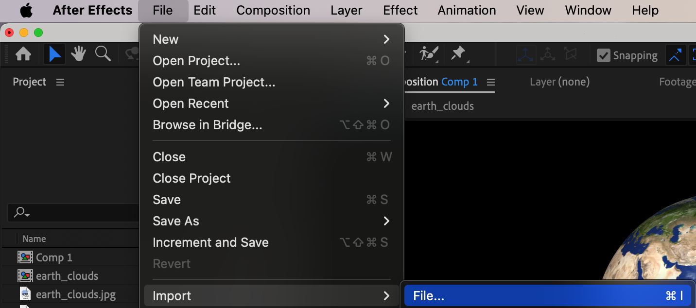First, import the images of Earth and cloud maps, or any other planetary textures in equirectangular projection that you found online. These textures will serve as the surface and atmospheric layers of your planet. Go to File > Import > File and select the images.