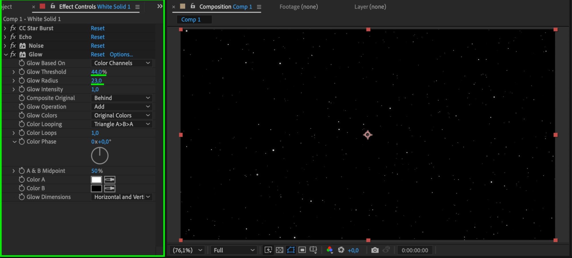 By combining CC Star Burst, Echo, Noise, and Glow, you can create a realistic shooting star in After Effects. This effect works great in space scenes, fantasy projects, or animated backgrounds. Experiment with the settings to customize the look and motion of your shooting star.
