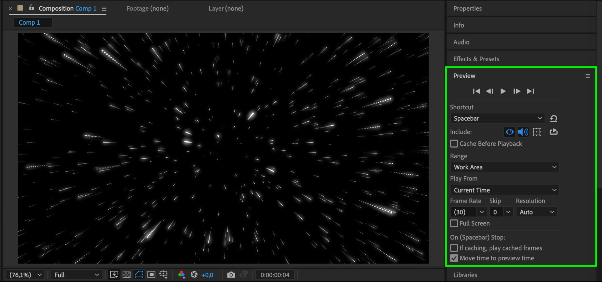 Go to Composition > Add to Render Queue, adjust the settings, and click Render to export your final shooting star animation.