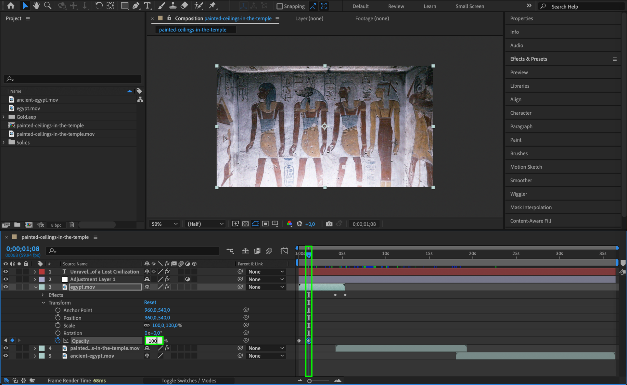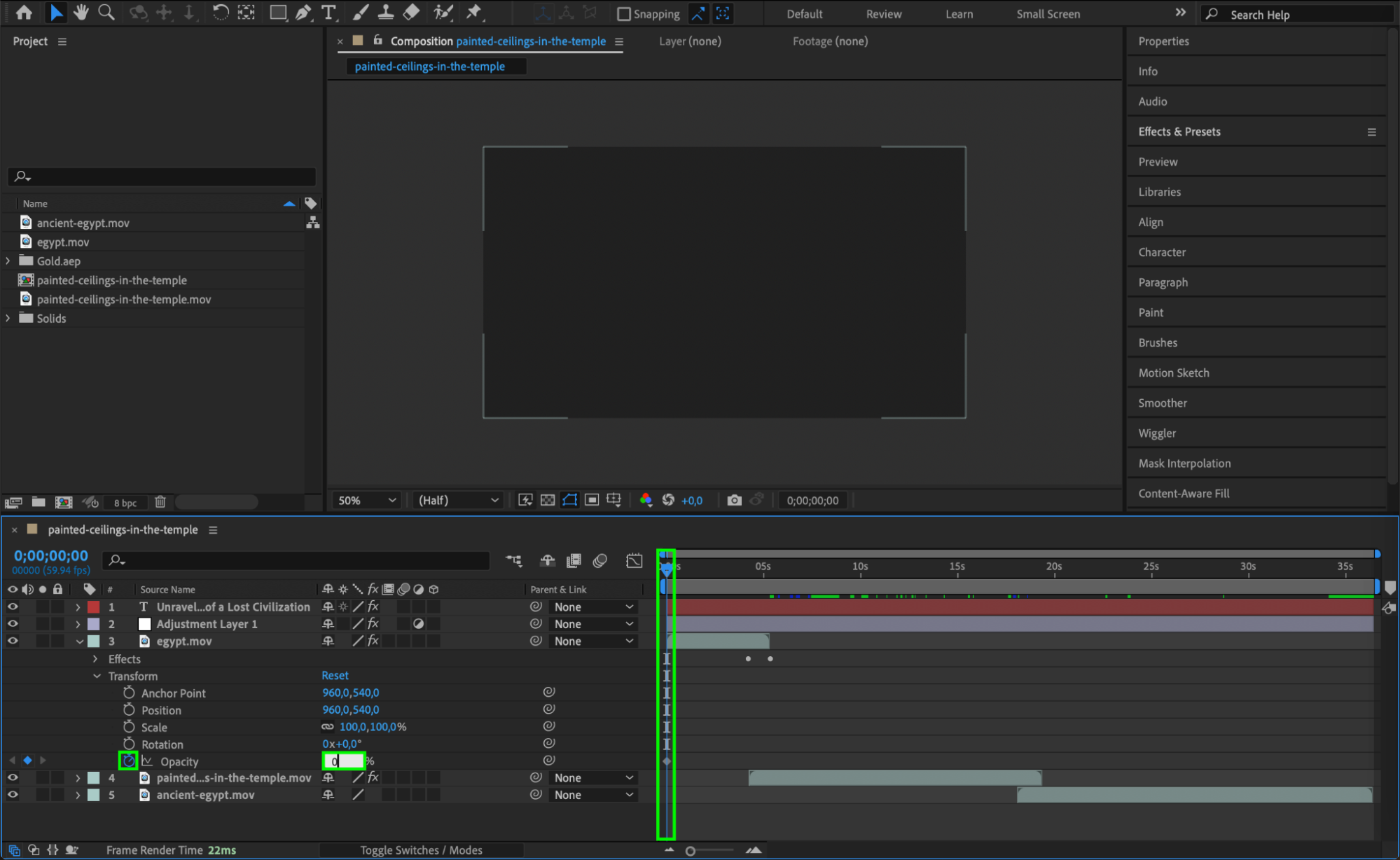 Bring your footage to life by animating video files using keyframes. Adjust the opacity, scale, and rotation under the Transform properties to add movement to your shots. This technique can help create dynamic and engaging visuals, ensuring your trailer feels more cinematic and polished.