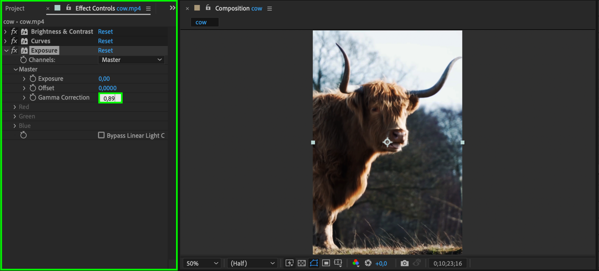 Another effective tool is the Exposure effect. Go to Effect > Color Correction > Exposure. Adjust the Exposure slider to decrease the overall brightness and deepen the darker areas of the image. You can also tweak the Gamma Correction slider to balance the midtones. This method is particularly useful if you want subtle adjustments without drastic changes.