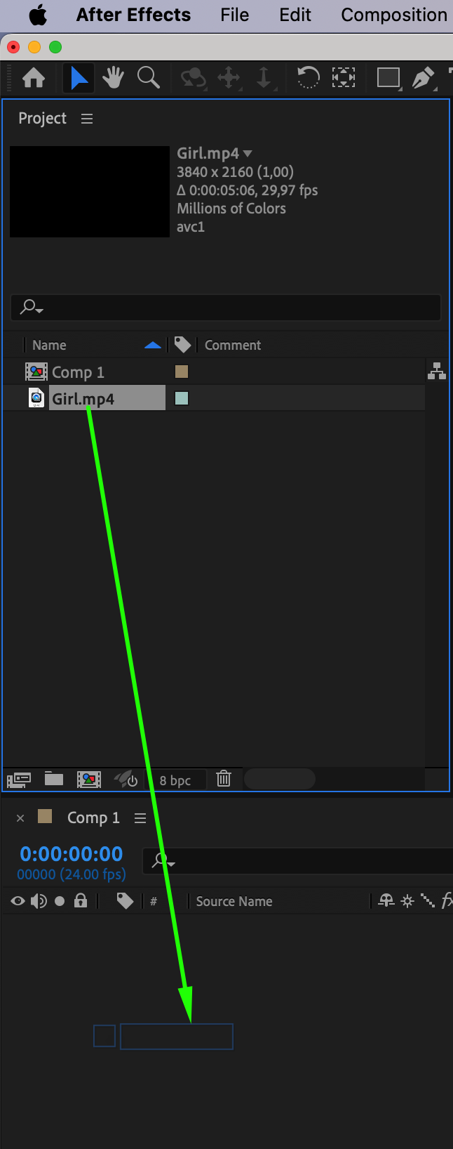 Go to File > Import > File and select your footage. Drag it onto the timeline to start working on the effect.