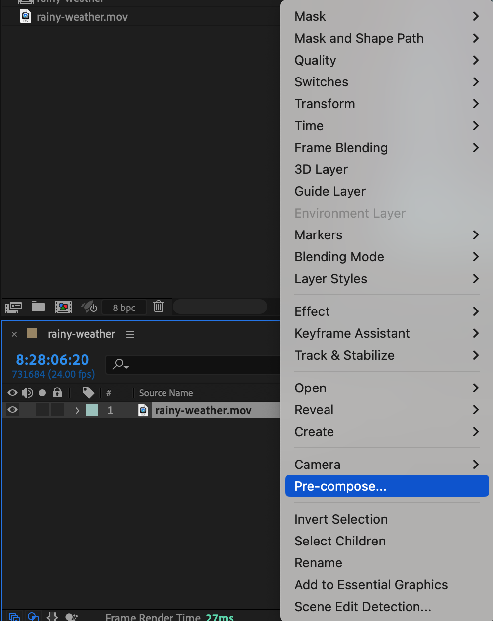 Step 2: Pre-compose Your Footage