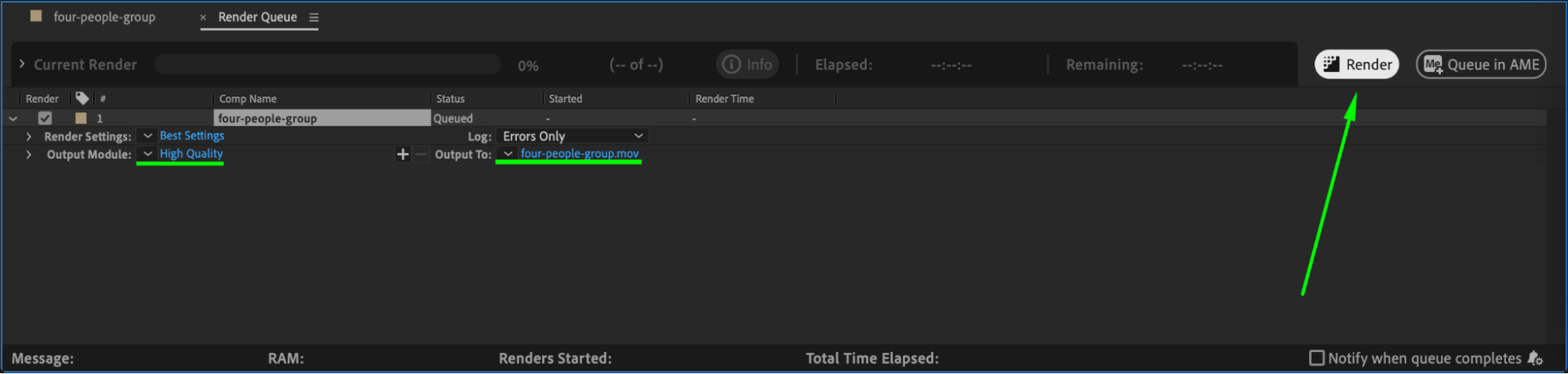 Once you are satisfied with the effect, go to Composition > Add to Render Queue, adjust your export settings, and render your final video.