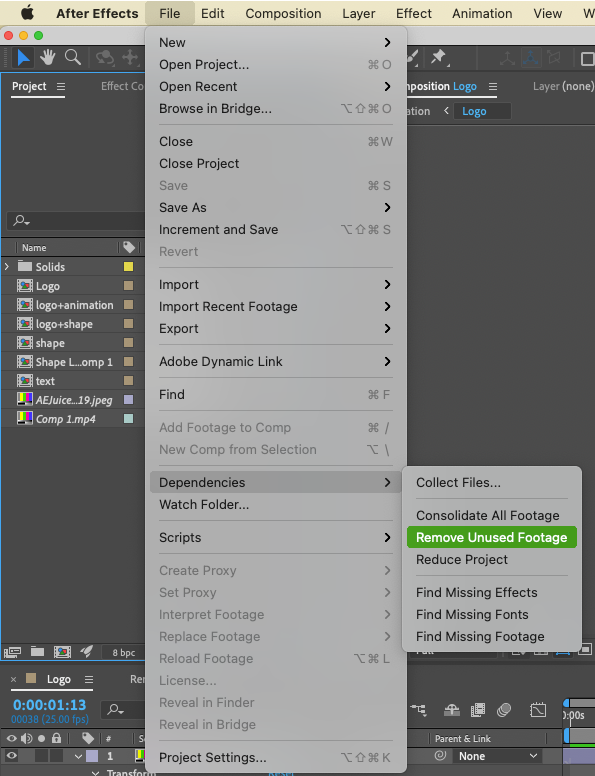 An overcrowded project with unused files can slow down After Effects. Regularly delete unused assets, empty folders, and unnecessary compositions to streamline your workflow. Try using File > Dependencies > Remove Unused Footage.