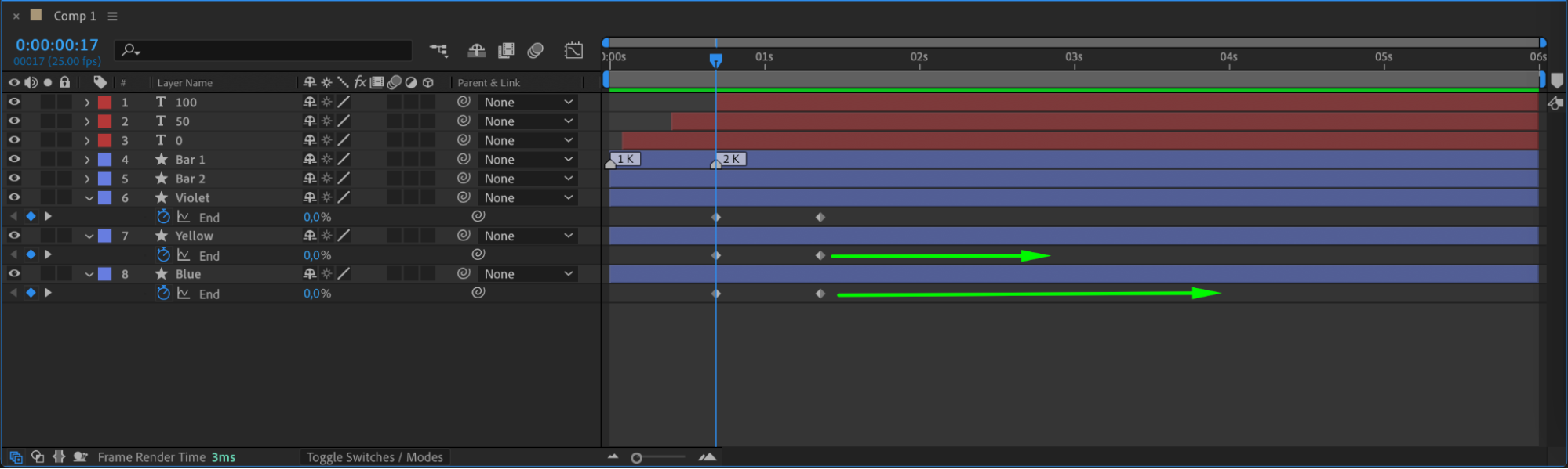 Use the Current Time Indicator and the shortcuts “Alt/Option + [” and “Alt/Option + ]” to trim your layers, ensuring each measurement label appears when the corresponding part of the graph is visible.