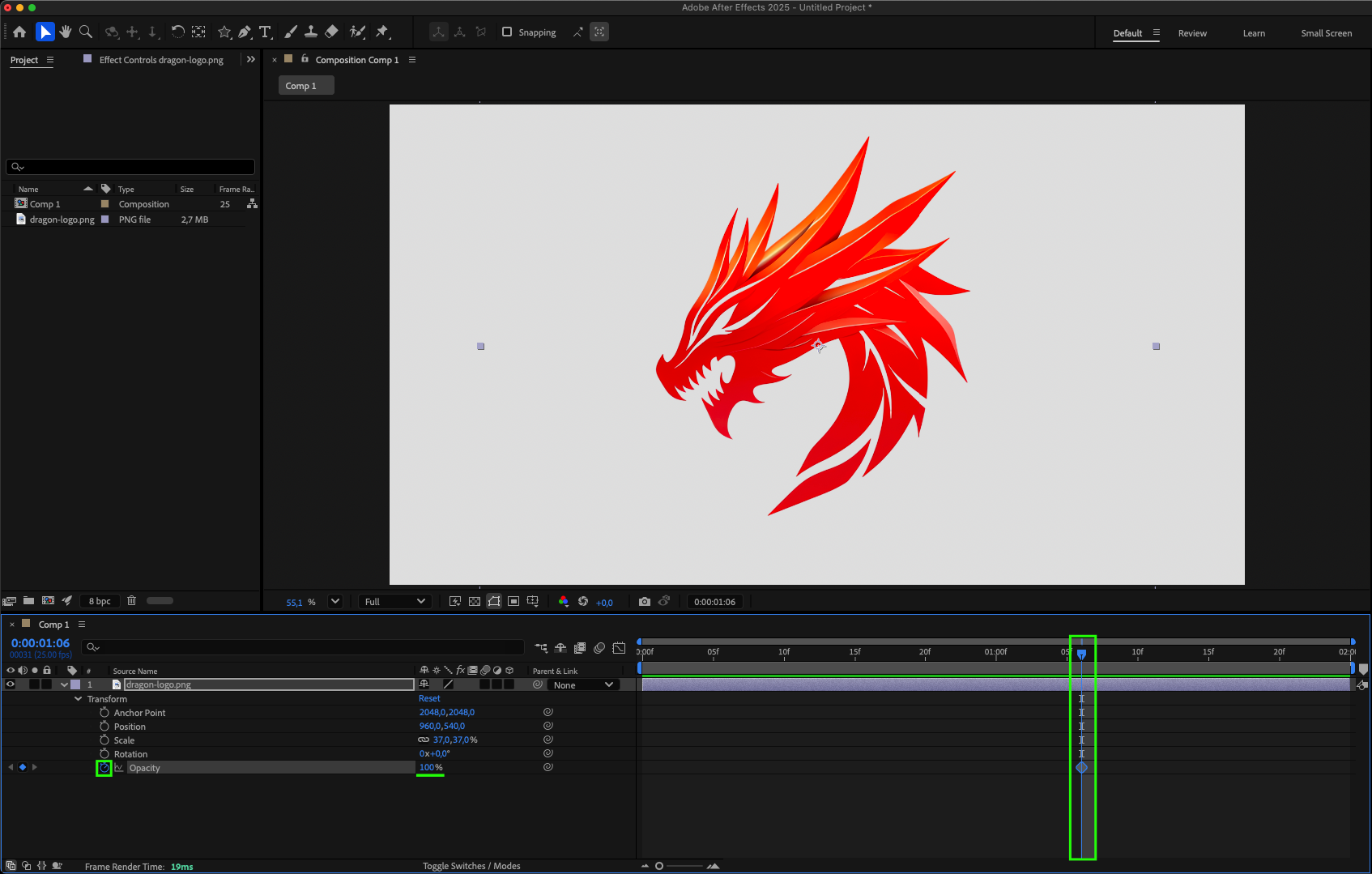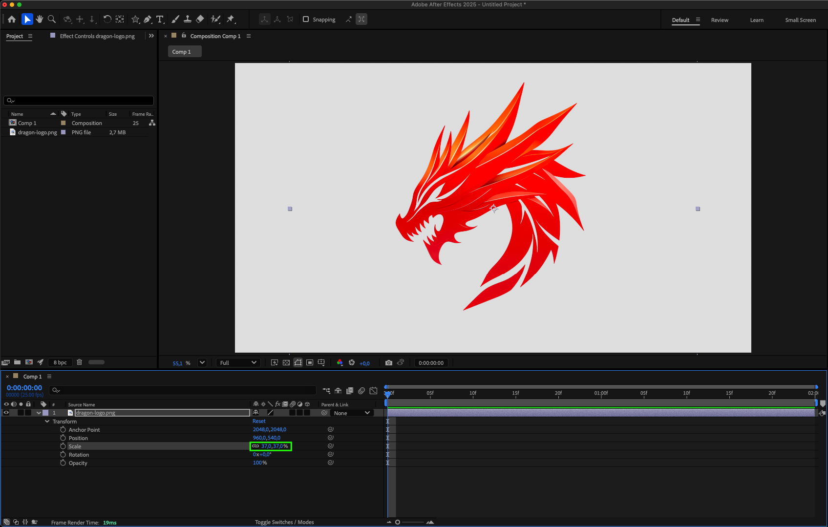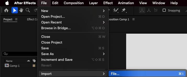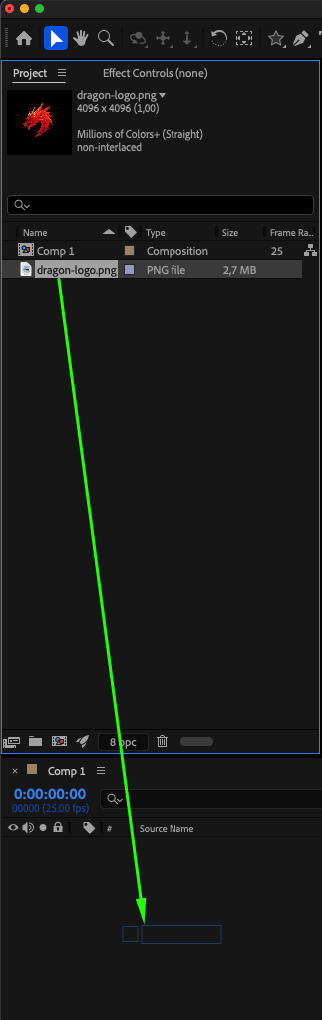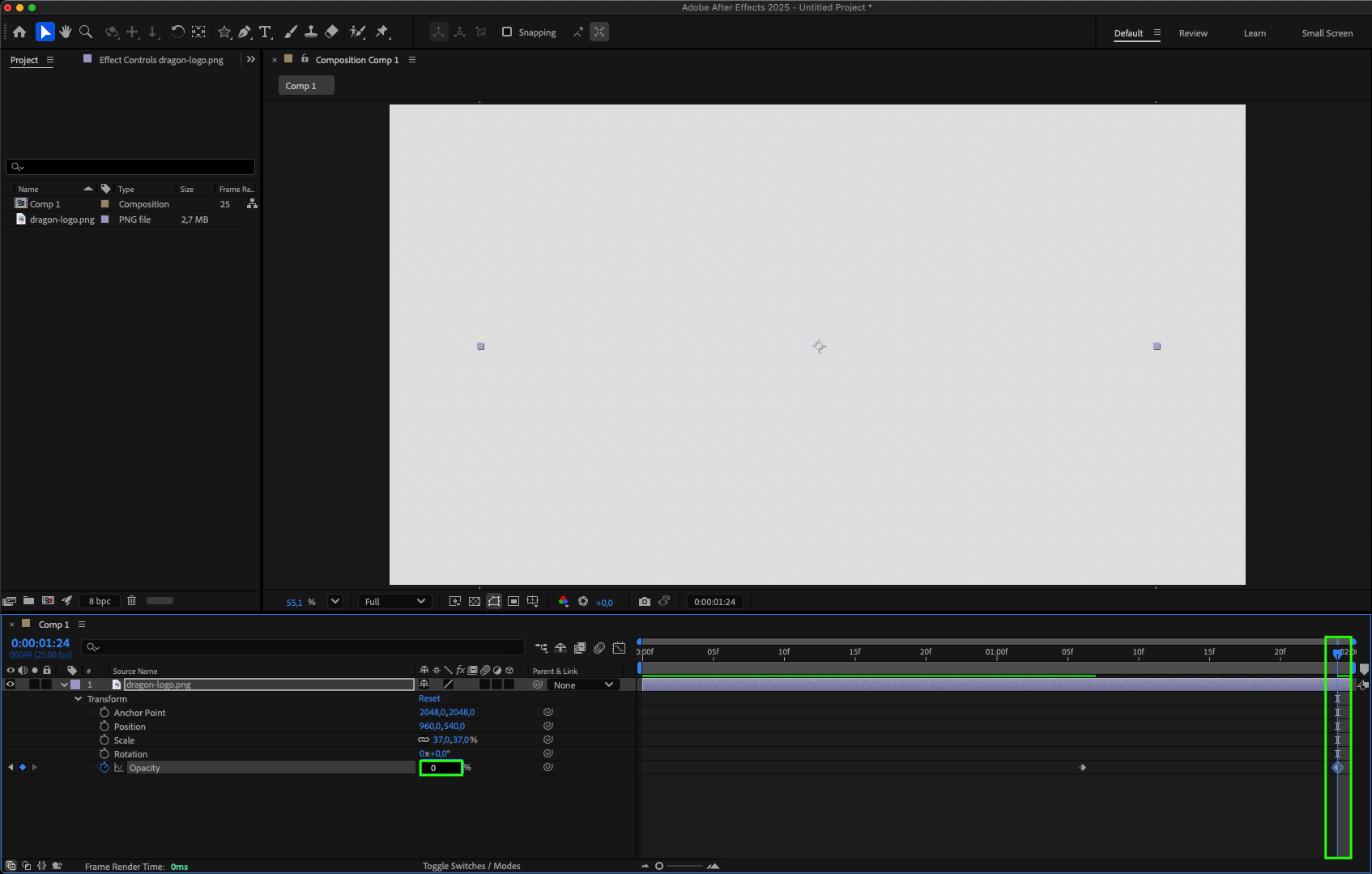 Before getting started, create a new composition, defining its parameters such as resolution and duration.