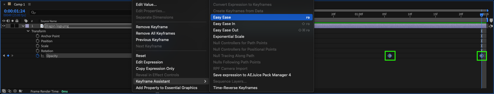 Step 5: Select the Created Keyframes and Apply Easy Ease