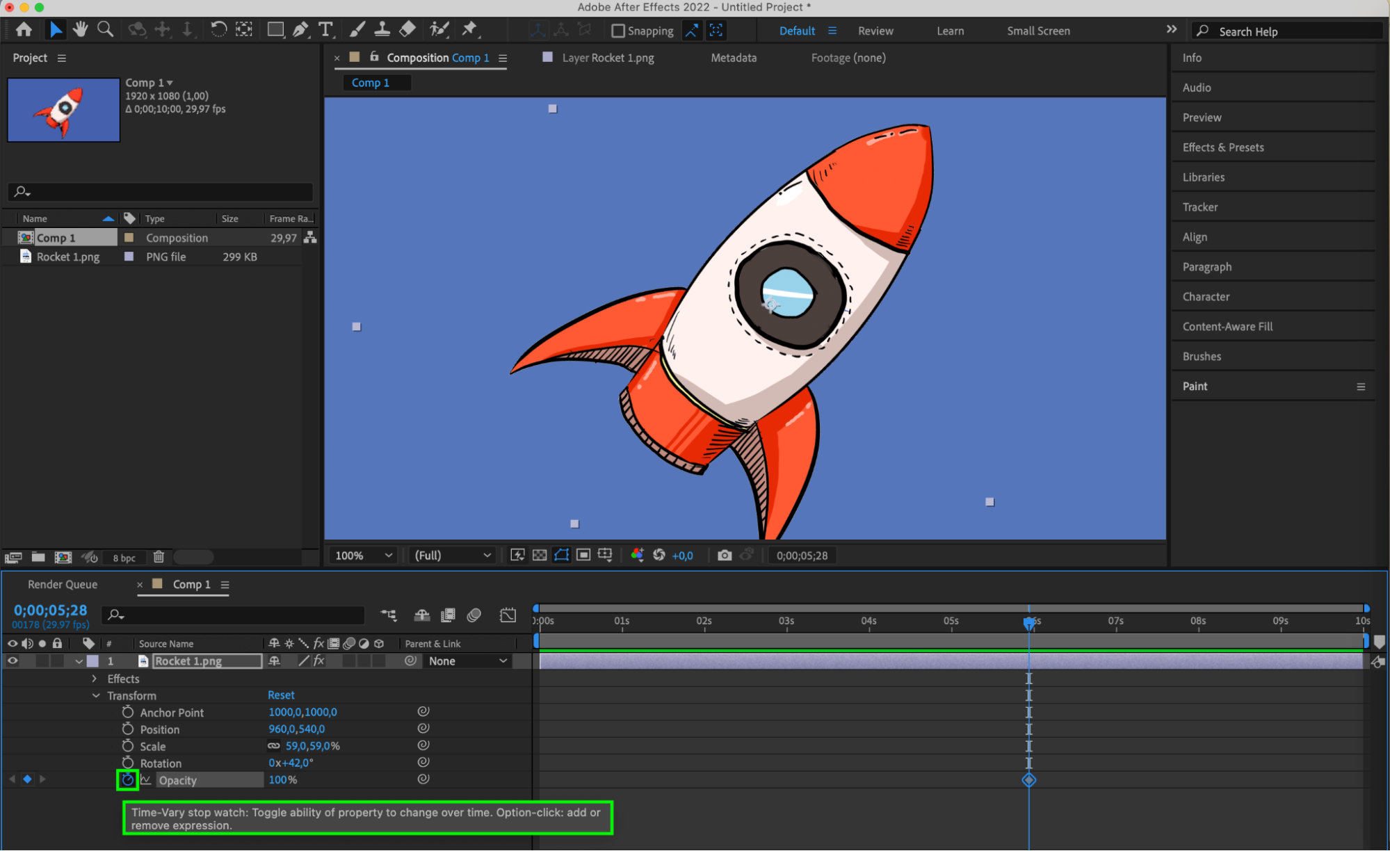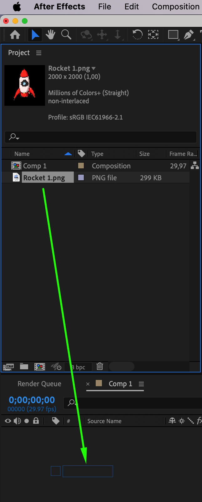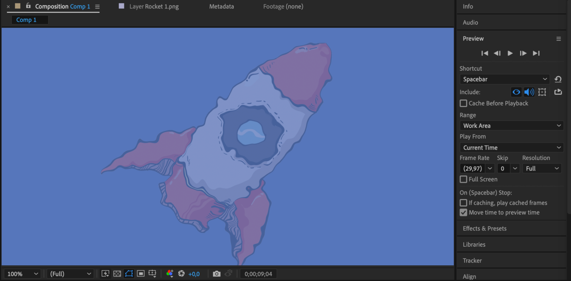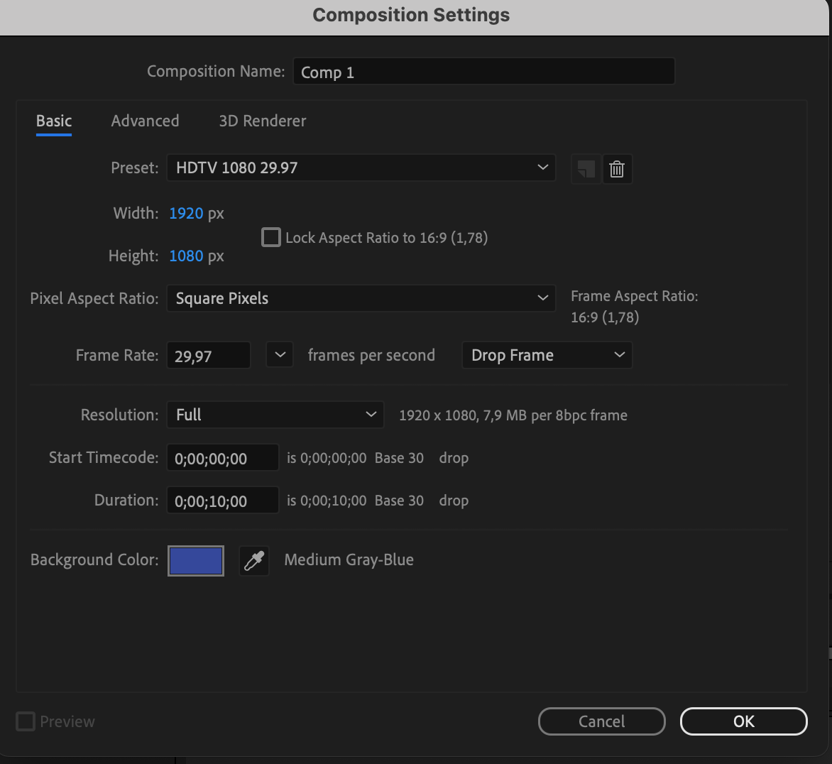 Before getting started, create a new composition, defining its parameters such as resolution and duration.