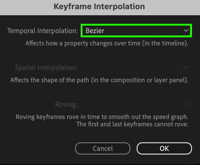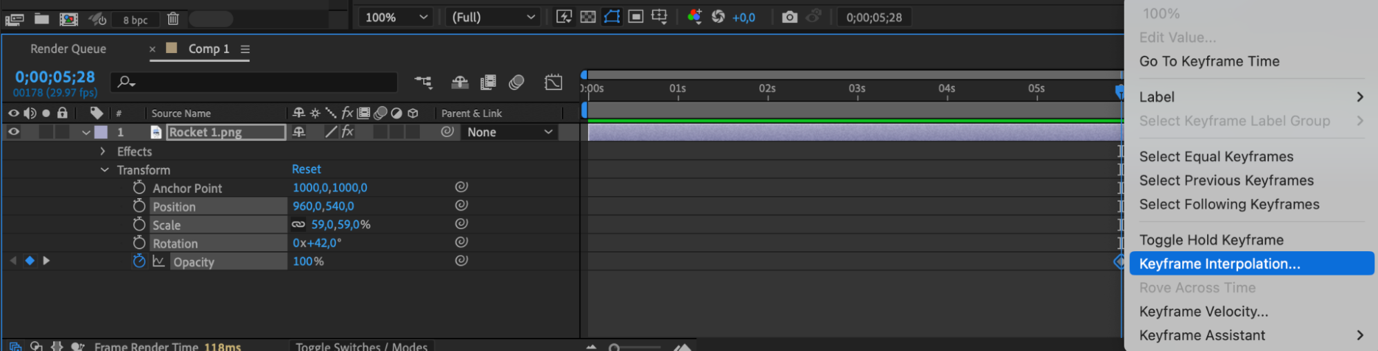 Create keyframes for the opacity property and adjust their position and speed to achieve the desired effect. Use keyframe interpolation and select “Bezier” for Temporal Interpolation to add realism and smoothness to the animation.