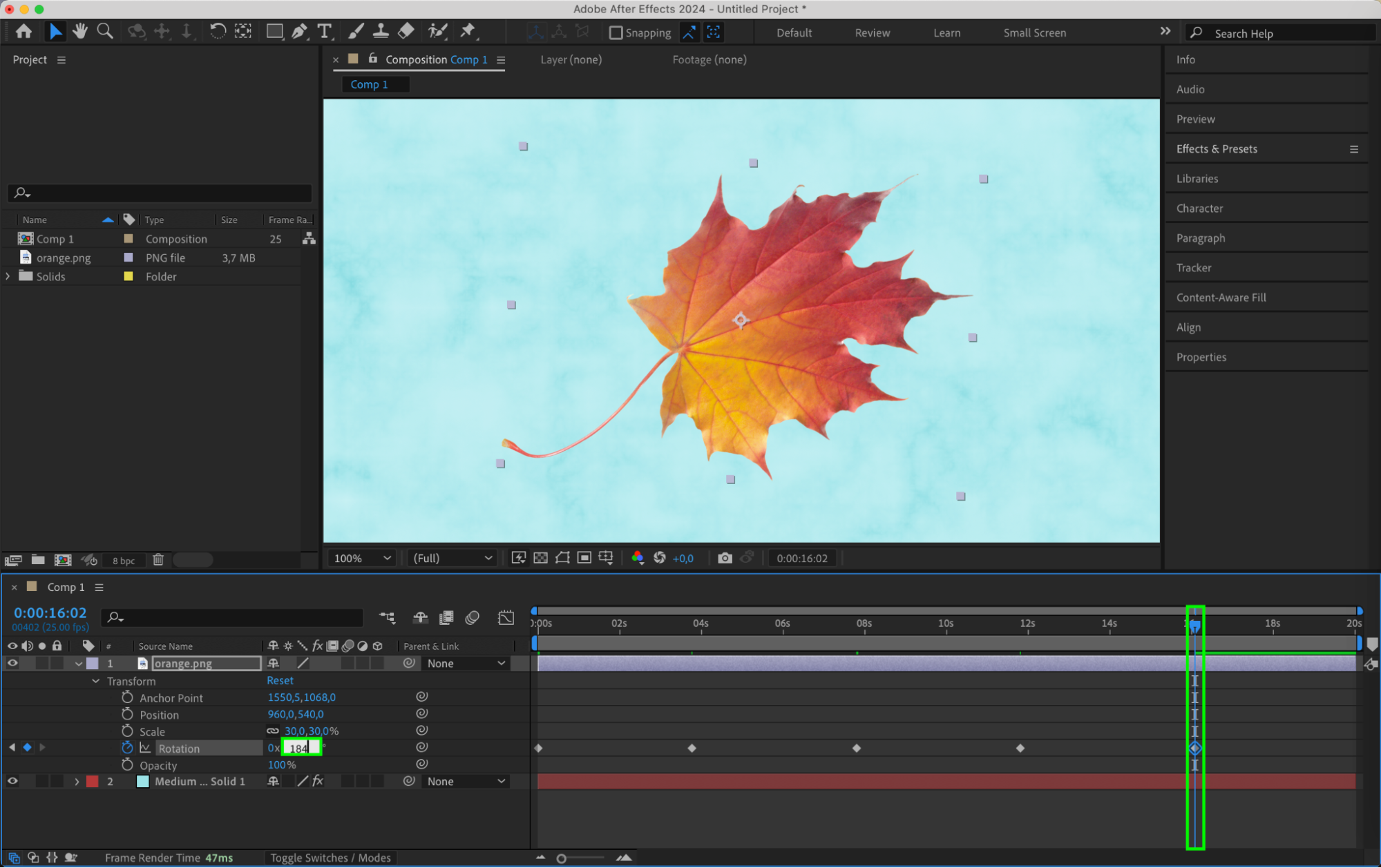 One of the simplest ways to create a spin effect is by using pre-built presets. After Effects offers a variety of rotation presets that you can easily apply to your layers. Simply go to the Effects & Presets panel, search for rotation presets, and drag and drop the one that suits your needs onto your layer. You can then adjust the preset settings using the Effect Controls panel to customize the spin effect to your liking.