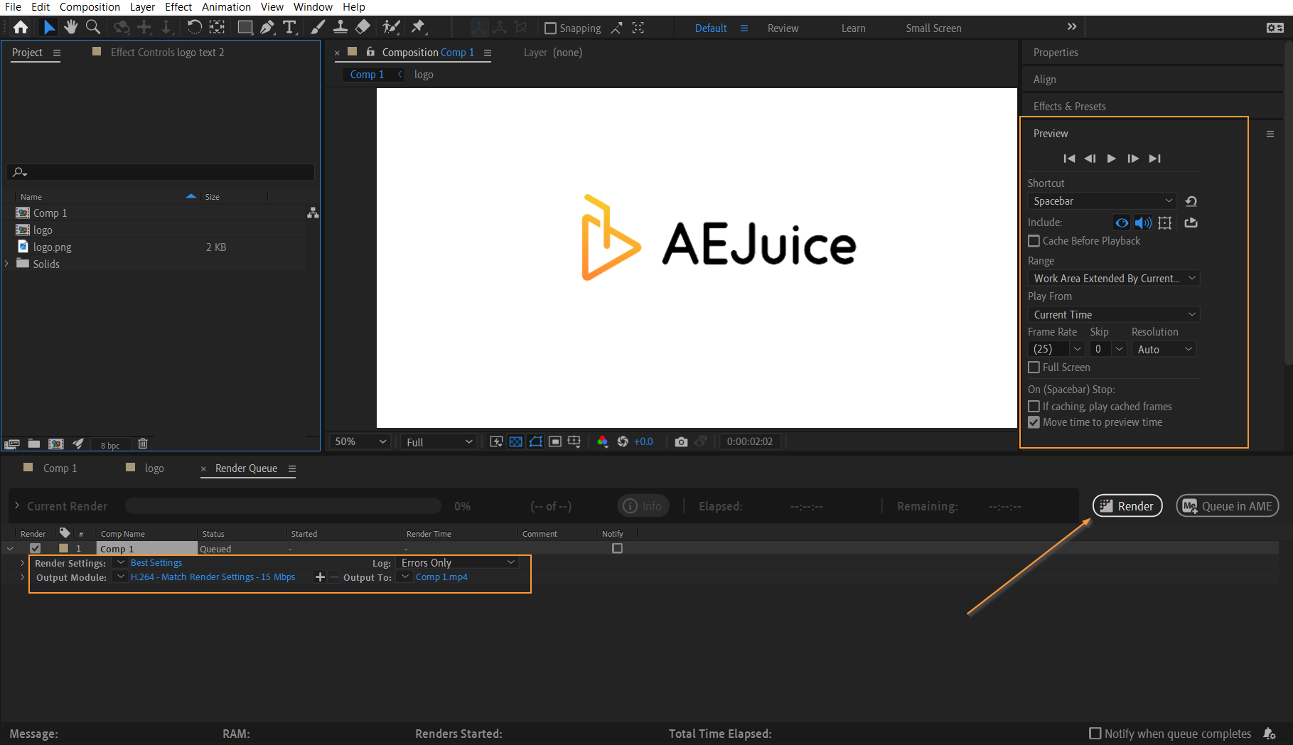 7. Preview and export: Before finalizing your animated logo, preview it by pressing the hotkey “0” on the numeric keypad. If you’re satisfied with the result, it’s time to export. Use the hotkey “Ctrl+M” (or “Cmd+M”) to add Comp to the Render Queue. Configure the export settings as per your requirements, select the desired file format, and click “Render” to save your animated logo.