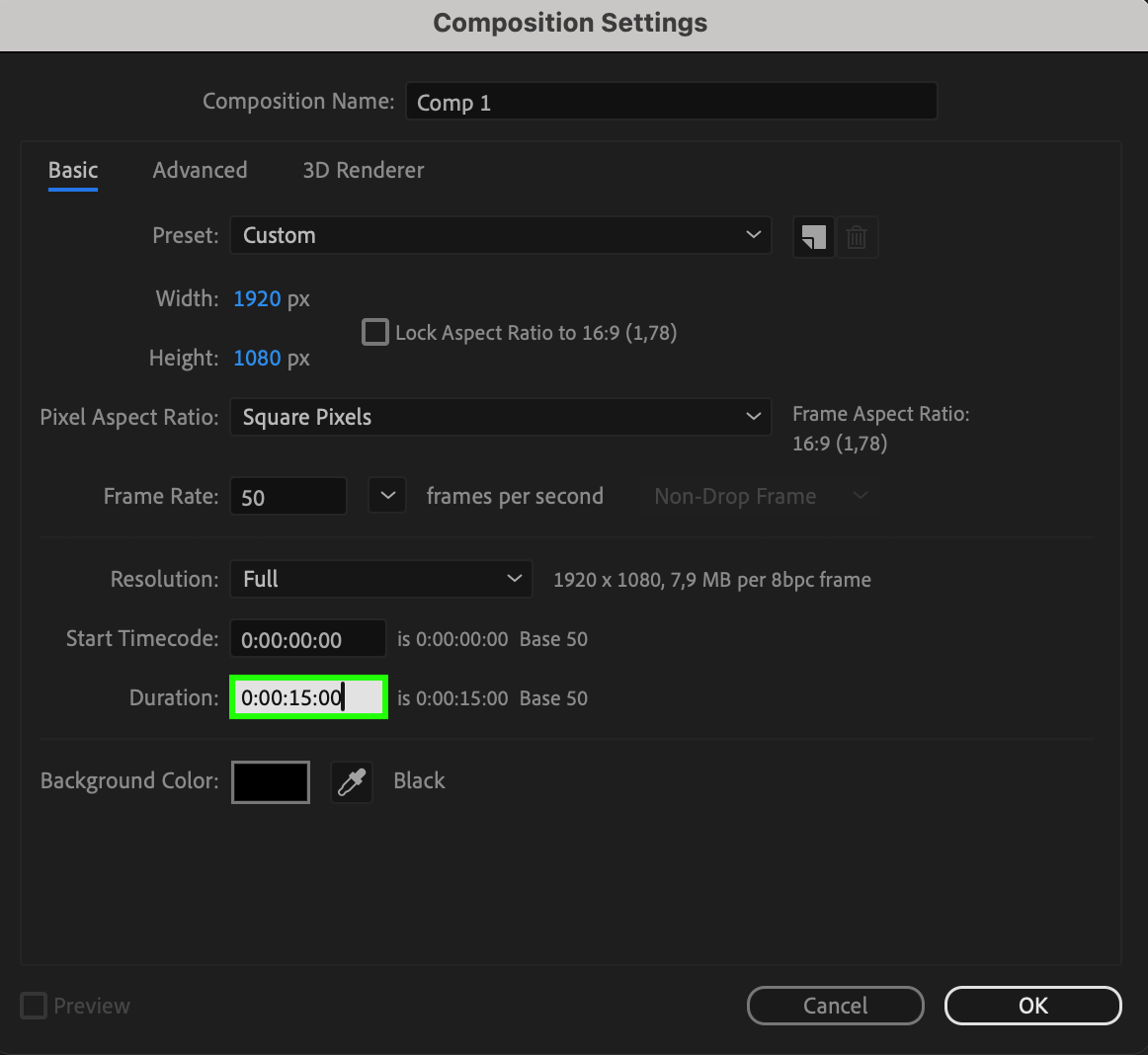 First, open After Effects and create a new composition. Set the duration of your composition to the desired length of your looping animation. For example, if you want a 15-second loop, set the duration to 15 seconds.