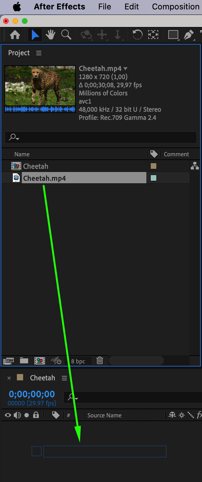 Begin by importing your video file into After Effects. To do this, go to File > Import > File and select your video. Create a new composition and drag your video from the Project panel to the Timeline panel.