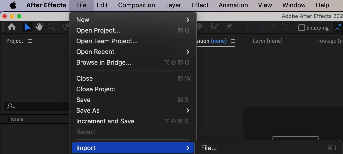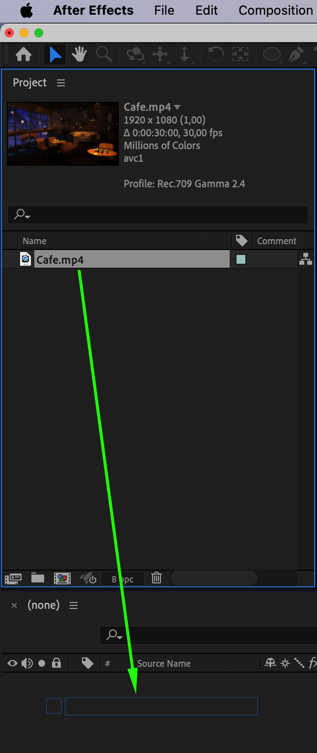 Start by importing your footage into After Effects. Simply drag and drop your video clip or composition into the project panel.