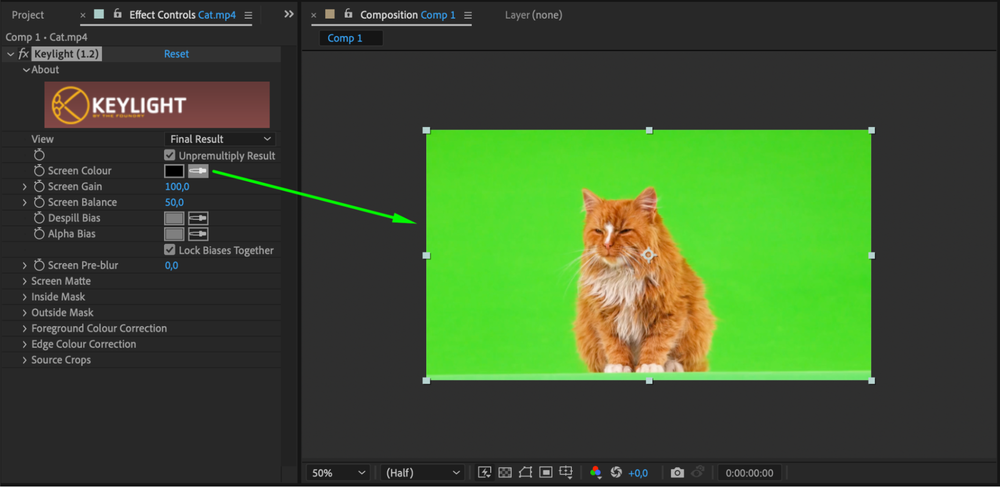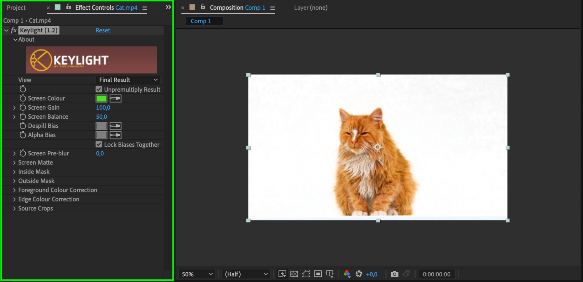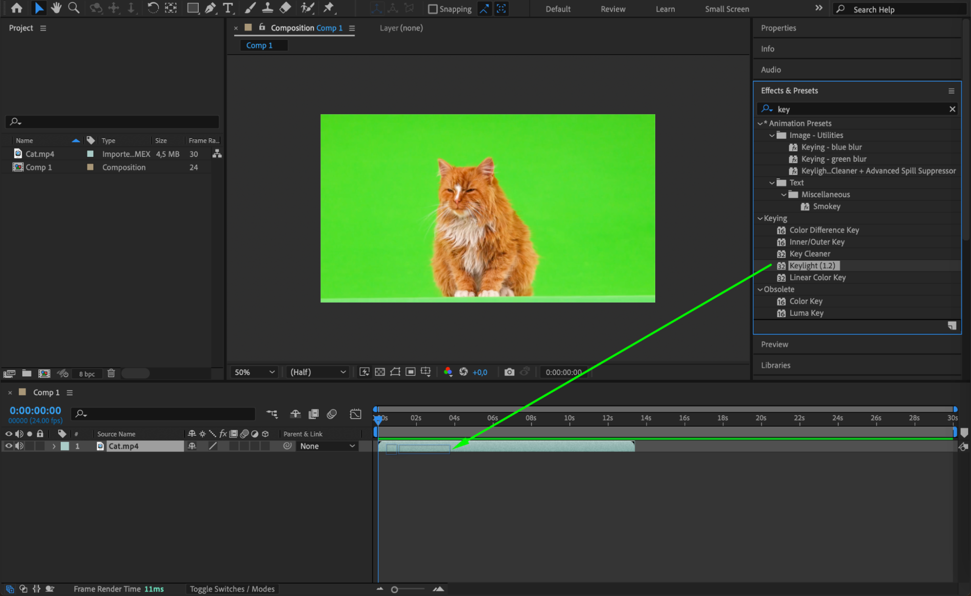 If your imported file includes a background that you want to remove, use After Effects’ built-in tools. For green screen footage, use the Keylight effect found in the Effects & Presets panel. Apply it to the layer and adjust the settings to remove the background.