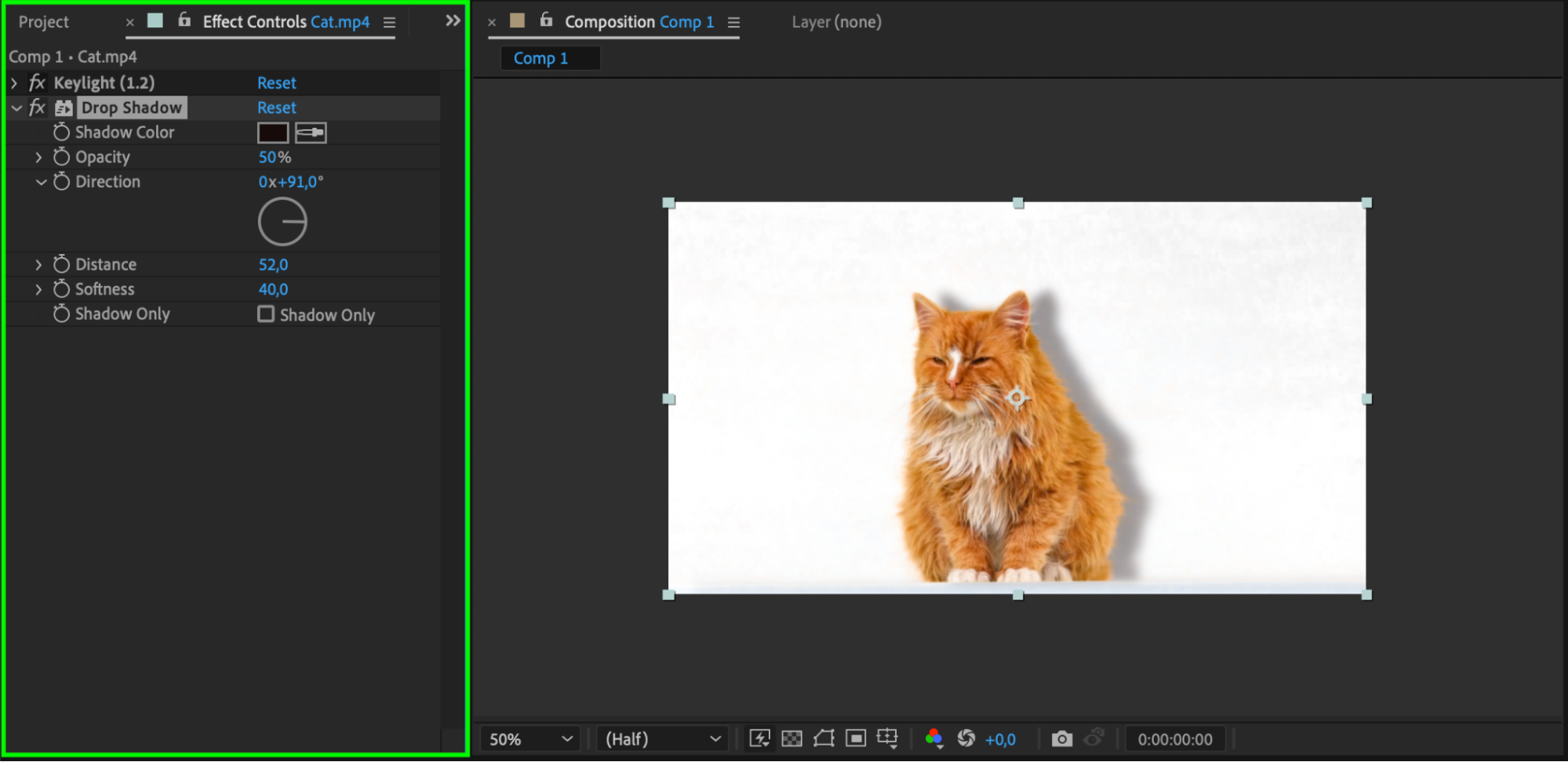 With the layer selected, navigate to the Effect Controls panel to fine-tune the drop shadow settings. Here, you can adjust the Opacity to control the transparency of the shadow, the Direction to set the angle at which the shadow is cast, the Softness to modify the blurriness of the shadow’s edges, the Distance to determine how far the shadow is from the object, and the Color to match the shadow’s hue with the scene’s lighting. Experimenting with these parameters will help you achieve a realistic and visually appealing shadow effect tailored to your project’s needs.